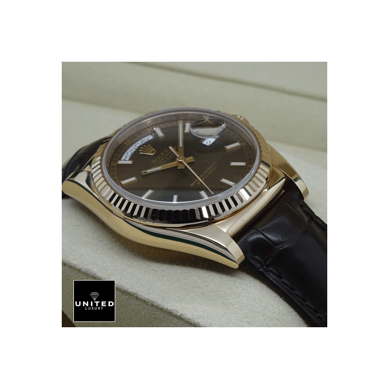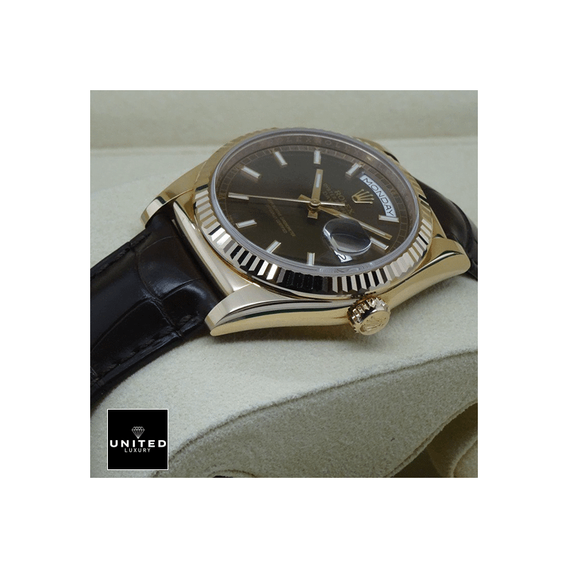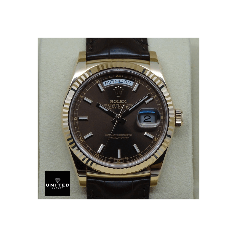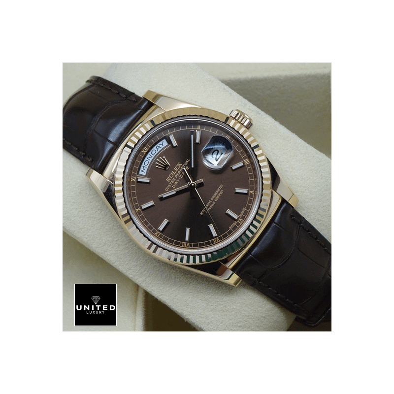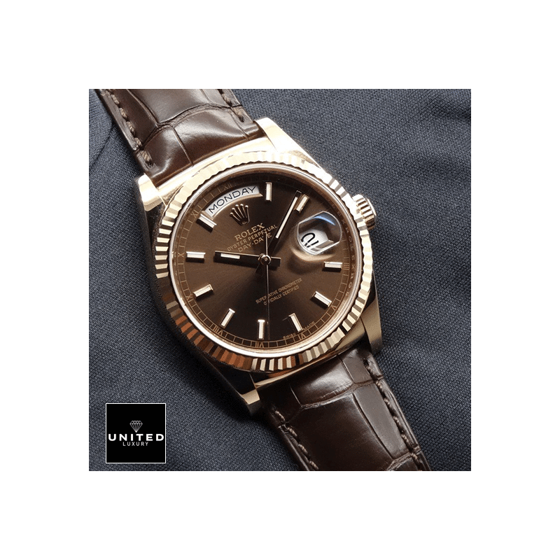 Imagine strapping on a watch that emanates the grace and sophistication synonymous with luxury timepieces. yet offers the practicality you’ve always desired. Introducing theRolex Leather Band Replica. an immaculate clone of the revered Rolex Day-Date 118135 V5 Stainless Steel Chocolate Dial. This watch is not merely an imitation but a work of art that mirrors the exclusive heritage of Rolex. allowing you to embody elegance and prestige effortlessly.Crafted with an impeccable 904L stainless steel case. bathed in an exquisite rose gold hue. this timepiece exudes opulence that catches every ray of light. The precision-cut sapphire crystal lenses atop therich. brown dial. adorned with precision stick indices and gleaming 904L stainless steel hands. provide a detailed and captivating visual feast. The watch ticks with theautomatic caliber 3155 movement—renowned for its60-hour power reserveandCOSC-certified precision—ensuring you’re always in sync with time.The leather bracelet. adjustable to your perfect fit. completes its sophisticated appearance. offering superior comfort and style. a quintessential feature for those drawn to the timeless appeal of arolex leather band. This accessorized twist grants the watch a modern edge while maintaining its classic allure. The leather feels supple and luxurious against your skin. a sensory delight that you can enjoy throughout your day.What separates thisRolex Leather Band Replicafrom other pretenders in the market is the sheer accuracy of its construction. It stands as aperfect 1:1 cloneof the original. down to the tiniest detail—from the serial numbers and cards to the font. punto. and finishings on the writings and markings. Its exact thickness and size. paired with an unparalleled movement and caliber. make it an impeccable stand-in for its authentic counterpart. Further enhancing its appeal is the resilient30m water resistance. ensuring robust functionality in everyday scenarios. be it a splash of water or unexpected rain.One can’t overlook the assurance that comes with its full2-year international warranty. This piece not only replicates the aesthetic and mechanical prowess of a Rolex but also provides peace of mind. affirming its reliability and endurance. With such meticulous attention to detail. even experts will find it difficult to distinguish it from an authentic Rolex.Indulge in the status and romance of wearing arolex with leather bandwithout compromising on quality or authenticity. This is not just a watch; it is a statement. an experience. and ultimately. the best choice you can make for combining luxury with practicality.