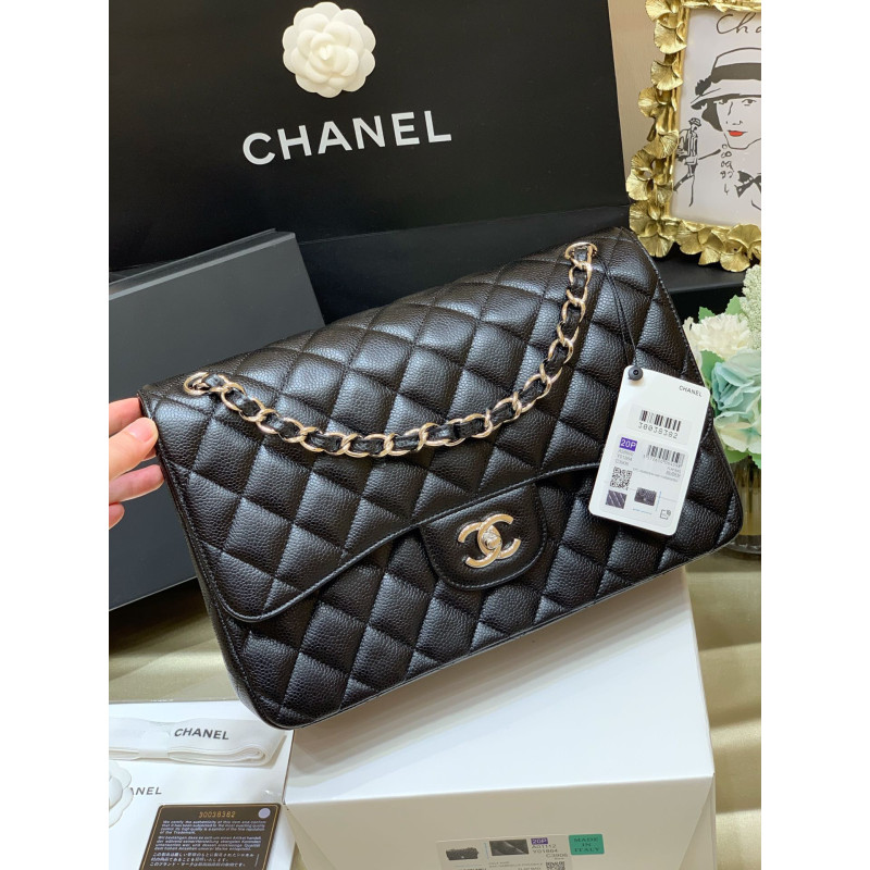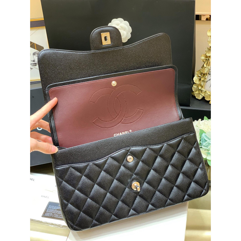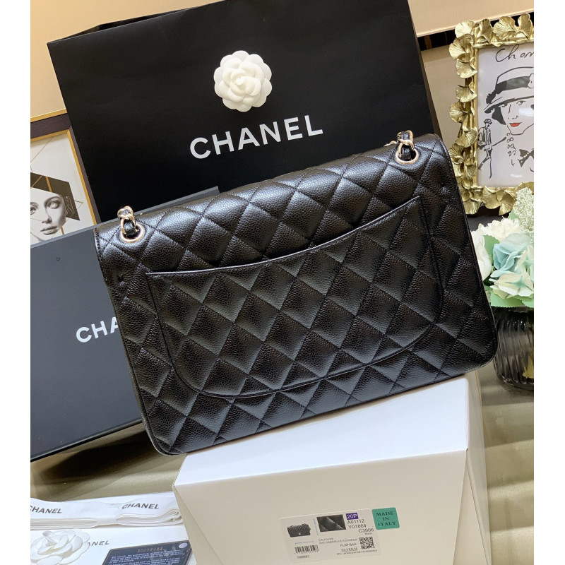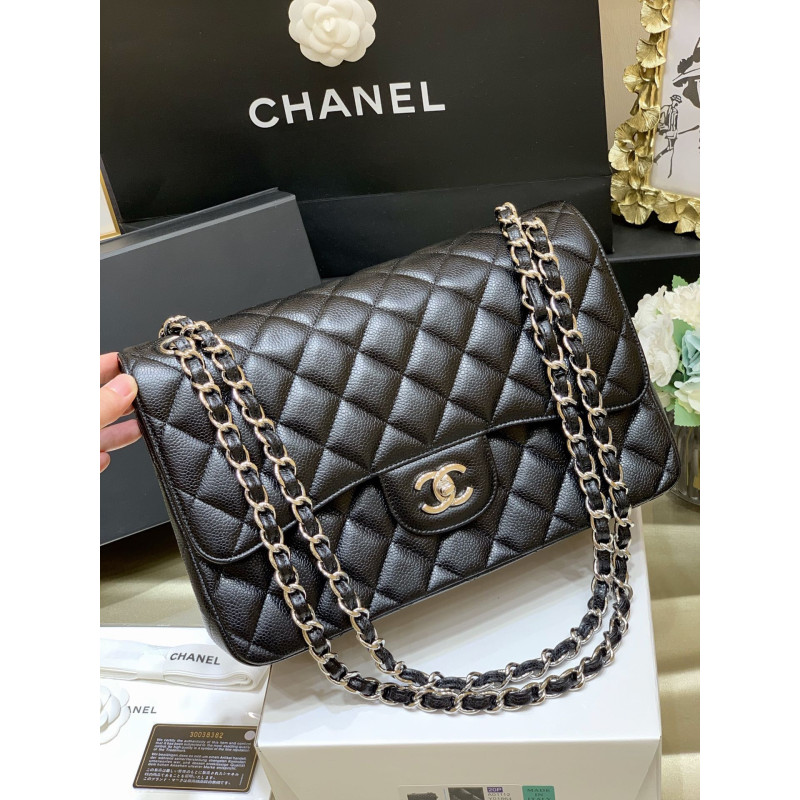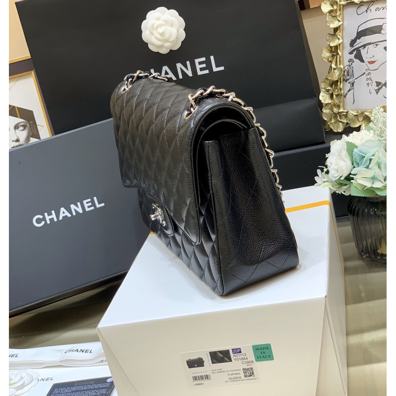 Ch@nel Flap Bag-Cavir Leather-Silver-30CM