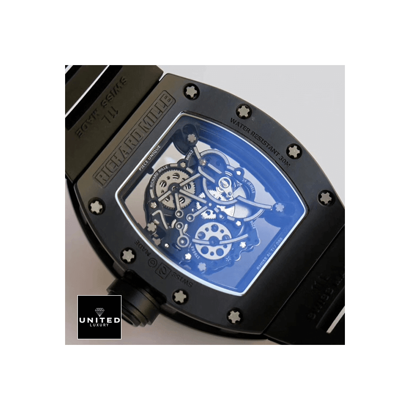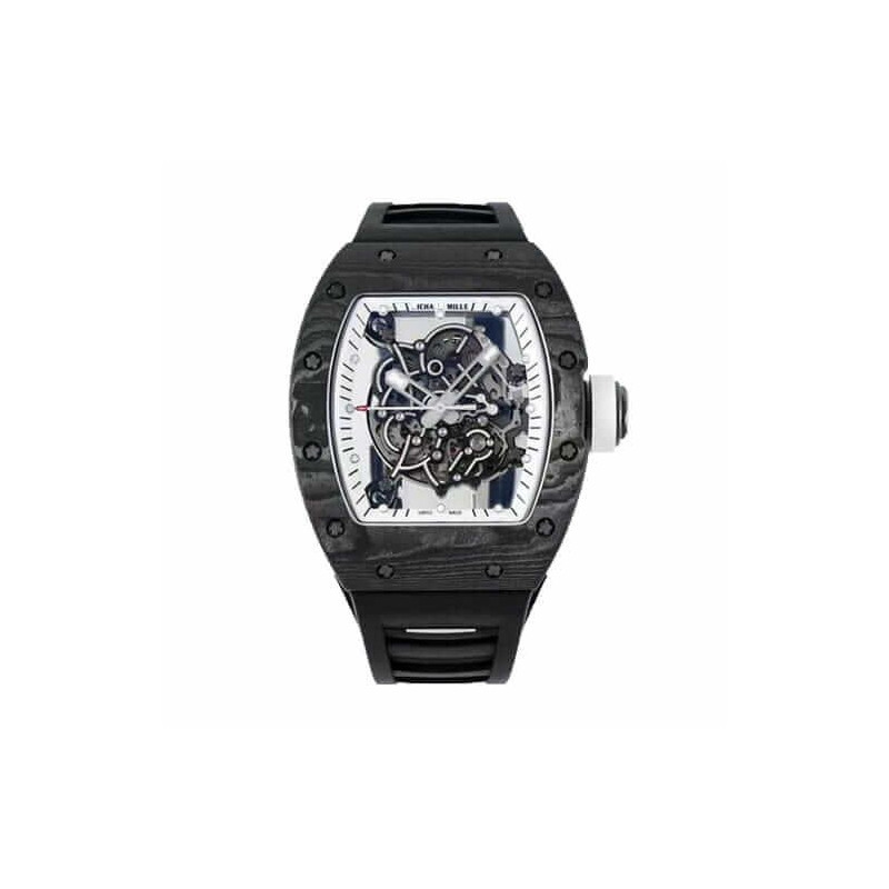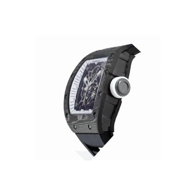 The Richard Mille RM055 White Legend Replica is a luxurious tourbillon watch with a sleek black NTPT Carbon Fiber case and bezel. It is powered by an automatic movement with a caliber of RM055 and a power reserve of 60 hours. The precision of the watch is within COSC certification limits. with a sweep motion second hand. The watch also features a black rubber bracelet with adjustable links and a 904L stainless steel deployant clasp. The skeleton dial has dot indices and 904L stainless steel stick hands. The watch is also water-resistant up to 30m and comes with a 2 year international warranty.The Richard Mille RM055 White Legend Replica is a perfect 1:1 super clone Swiss mechanism watch. It has the same arrangeable serial numbers and cards. font. punto. and finishing for writings and markings. thickness and size. and powerful movement and caliber as the authentic watch. It is the perfect combination of luxury and precision. making it the ideal watch for any occasion.