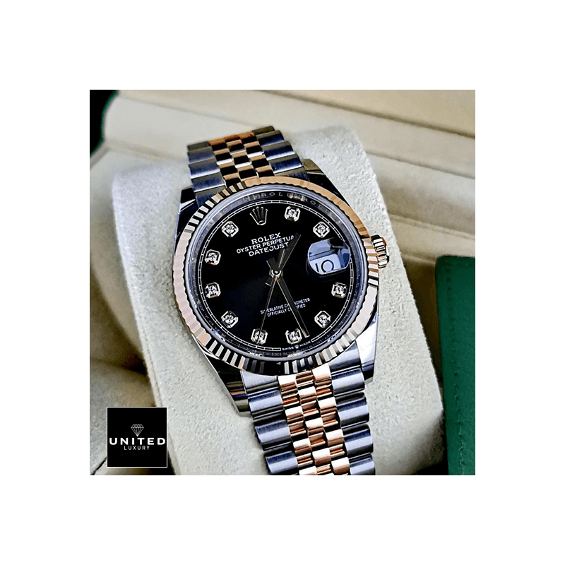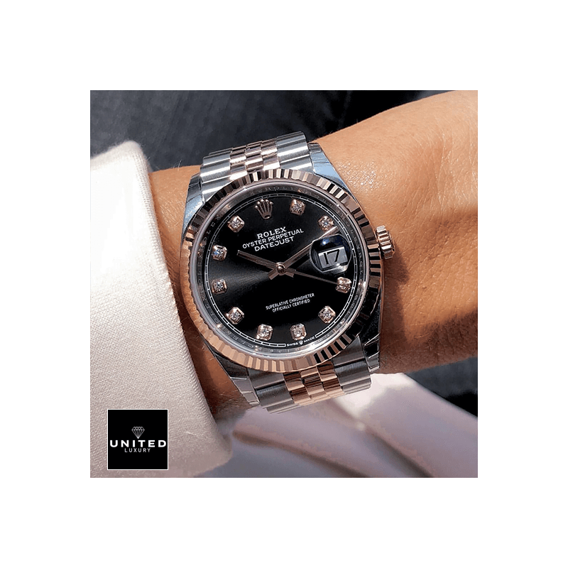 This Rolex Datejust 36 126231-0019 replica is a perfect 1:1 clone of the original. It features a 904L stainless steel case and bracelet. with a rose gold and steel color combination. The 36.00mm case houses a 3235 automatic movement with a 60-hour power reserve and a precision of -3/+3 sec/day within COSC certification limits. The black dial features gem-set indices and 904L stainless steel stick hands. The watch is water-resistant up to 30m and comes with a full 2-year international warranty.The attention to detail on this replica is remarkable. It has the same adjustable serial numbers and cards. font. punto. and finishing for writings and markings. thickness. and size as the original. The powerful movement and caliber are also identical. Not even your jeweler can tell the difference! Japanese mechanism watches may have different materials and movements. so please contact our support team for more information