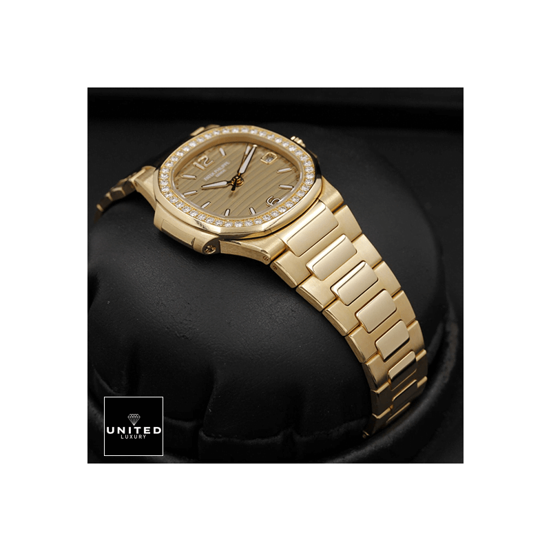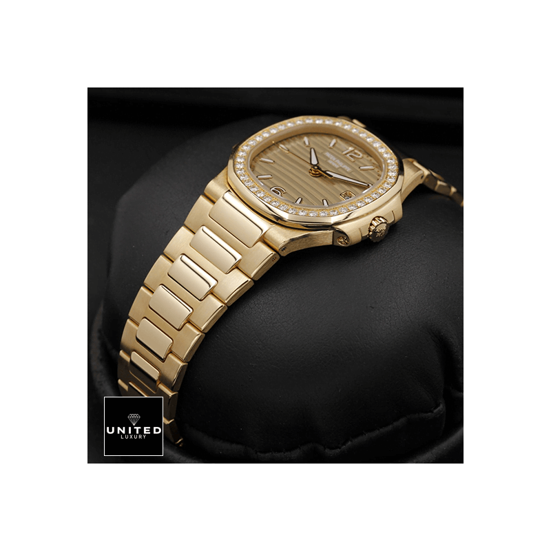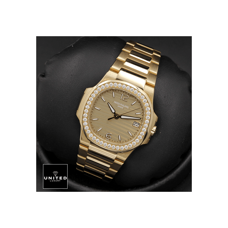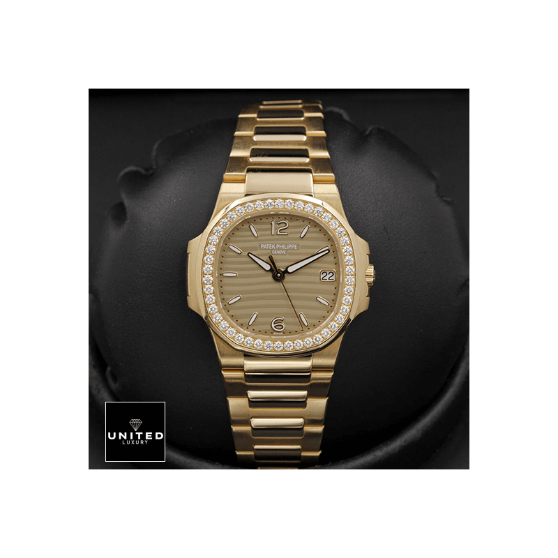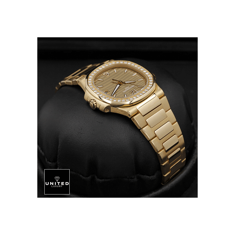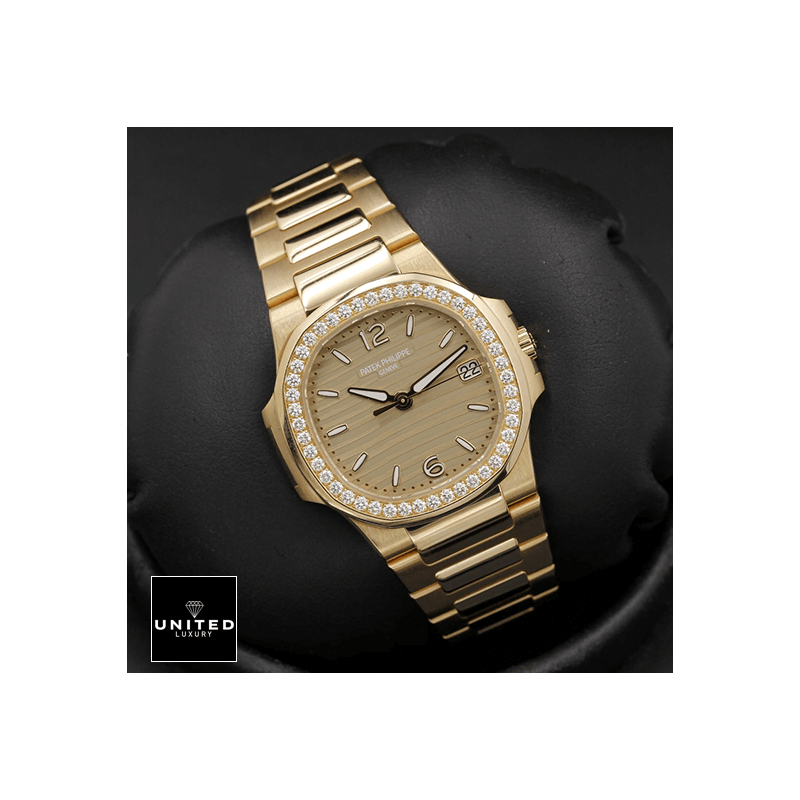 The Patek Philippe Nautilus 5719/10G-010 Replica is a high quality watch. It features a 904L stainless steel case and bezel. set with white gold and gems. The case is 40.00 mm in size and 8.50 mm thic...