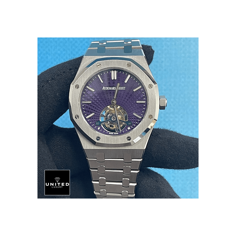 The Audemars Piguet Royal Oak Extra Thin Tourbillon Replica is a luxury watch. It features a 904L stainless steel case and bezel. with a sapphire crystal and a steel color. The movement is an automatic AP 2924 caliber with a power reserve of 60 hours and a precision of (-3/+3 sec/day) within COSC certification limits. The dial is a Tapisserie Evolutive purple color with stick indeces and Royal Oak hour-marker and hands.The bracelet is a 904L stainless steel Royal Oak type with adjustable links and a 904L stainless steel AP folding clasp. The watch is water-resistant up to 30m and comes with a full 2 year international warranty. It is a perfect 1:1 super clone Swiss mechanism watch. with the same arrangeable serial numbers and cards. font. punto. and finishing for writings and markings. thickness and size. and powerful movement and caliber.