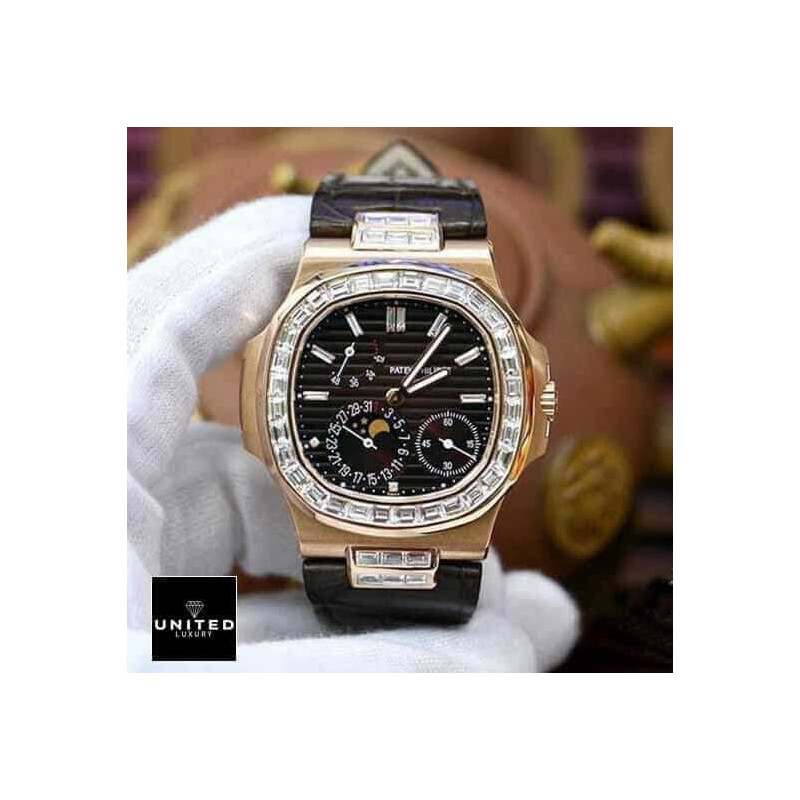 The Patek Philippe Nautilus Brown Dial Replica is a luxurious watch with a 904L stainless steel case and rose gold bezel. The 40.50 mm case is 12.2 mm thick and features a sapphire crystal. The black ...