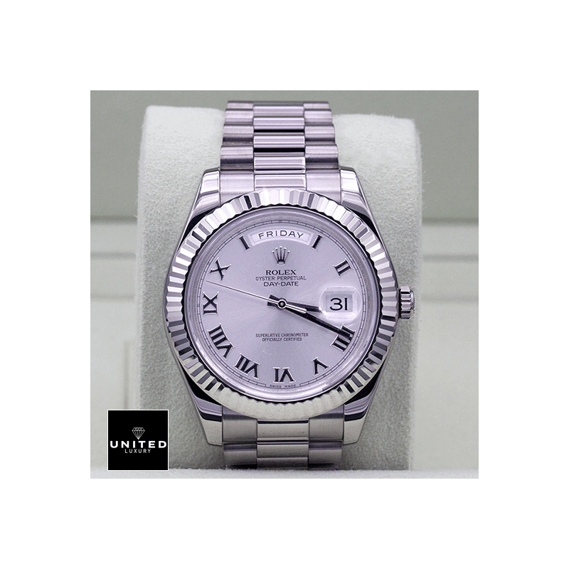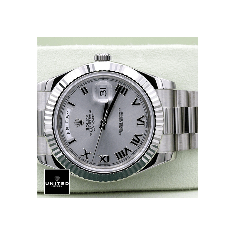 TheRolex Day-Date 218239-0041 V6 White Roman Dial Replicais an exquisite timepiece that flawlessly captures the essence and grandeur of its legendary original counterpart. This remarkable replica is more than just a; it is a meticulous 1:1 clone made withexceptional precision and attention to detail. Envision the timeless elegance and luxurious feel of a Rolex on your wrist. but with a significantly more accessible price point. Built from904L stainless steel. the case and bezel exude asophisticated white gold colorthat radiates under any lighting condition. adding a touch of refined elegance to your ensemble.Picture the sleek41.00mmsapphire crystal case glistening on your wrist. just the right size to command attention without being ostentatious. The13.00mm thicknessensures a robust yet comfortable fit. perfectly balancing durability and elegance. The bracelet. also crafted from 904L stainless steel. features an adjustable link and a white gold folding clasp. guaranteeing a snug fit for all wrist sizes while maintaining the classic aesthetic that Rolex enthusiasts cherish.The dial. a captivating white adorned with Roman numerals. serves as a testament to the watch’s blend of sophistication and functionality. The stick hands. made from 904L stainless steel. glide effortlessly over the dial. ensuring precise timekeeping thanks to the automatic movement with acaliber of 3156. Imagine the pleasure of knowing that the watch on your wrist has apower reserve of 60 hoursand remains accurate withinCOSC limitsat -3/+3 sec/day. ensuring you are never behind schedule.For those who value a worry-free experience. this replica has passed a30m water resistance test—although swimming is not recommended. it provides peace of mind for daily wear. Additionally. backed by a comprehensive2-year International United Luxury warranty. you can be assured of its quality and durability. The materials and markings are so precise that differentiating this replica from the original is nearly impossible. offering you the ultimate combination of luxury and affordability.In choosing the Rolex Day-Date 218239-0041 V6 White Roman Dial Replica. you’re not just acquiring a watch; you’re embracing a world of timeless elegance and uncompromising quality. This remarkable piece isn’t merely a substitute—it’s a testament to superior craftsmanship designed to enrich your everyday life. Experience the stature and grace of wearing a Rolex without the associated high cost. Indulge yourself in this carefully engineered masterpiece and let your wrist do the talking.