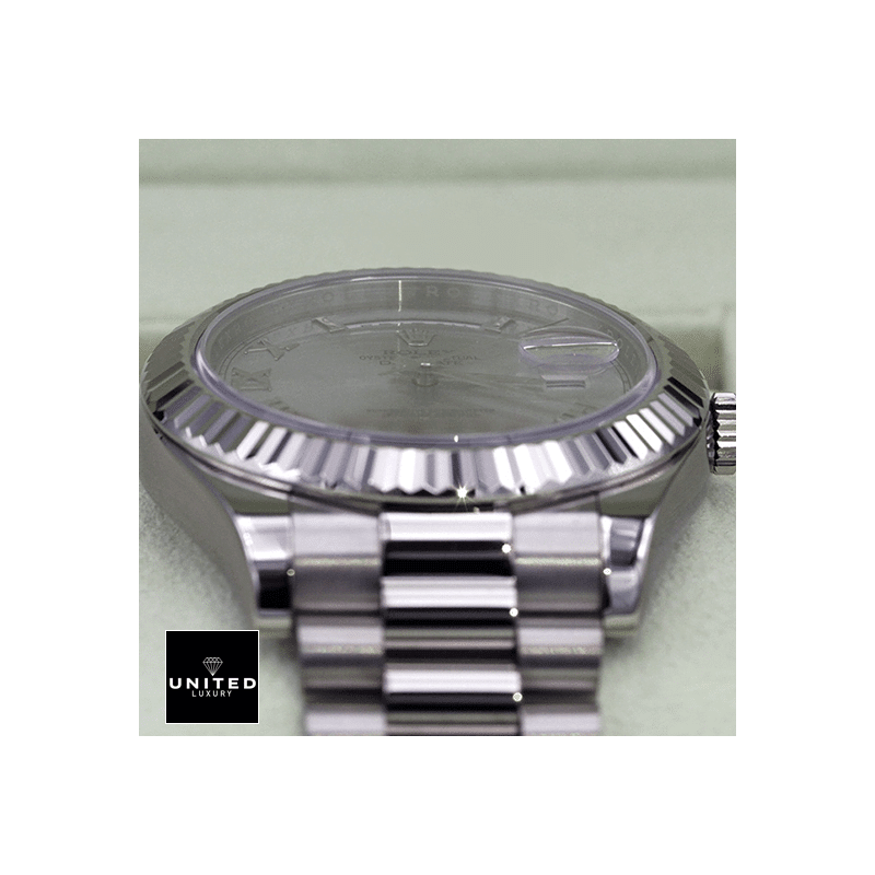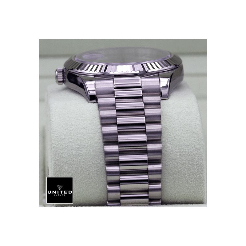 This Rolex Day-Date 228206 KW Stainless Steel Black Diagonal Dial Replica is a perfect 1:1 super clone of the original. It features a 904L stainless steel case. bezel. and bracelet. all in white gold ...