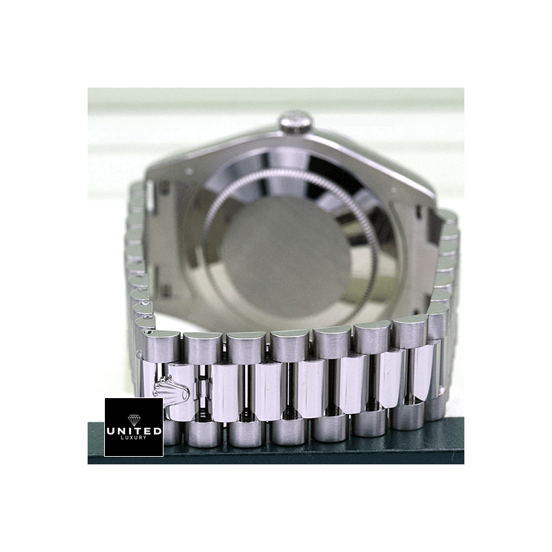 ‘DESCRIPTIONThis Rolex Day-Date 40 replica is a stunning piece of craftsmanship. It features a 904L stainless steel case with a white gold color and a gem-set bezel. The 40.00mm case is 12.00mm thick ...