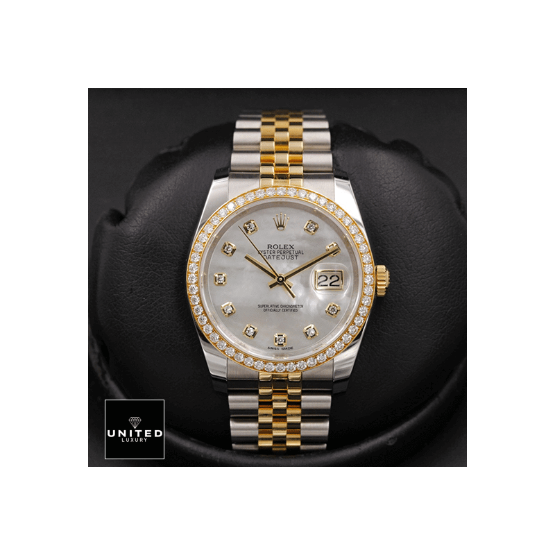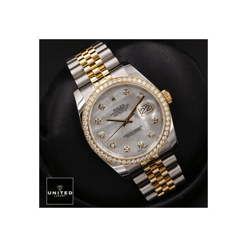 Introducing the Rolex Datejust Mother of Pearl 116243 Jubilee Replica. a timepiece that exudes elegance. luxury. and precision. This dazzling watch combines the brilliance of diamonds with the timeless beauty of mother of pearl. creating a masterpiece that stands out in any collection. The first glance unveils a symphony of luxury materials and meticulous craftsmanship. designed to mesmerize and captivate. Imagine the sparkle of the gem-set bezel catching light with every movement. and the smooth. lustrous surface of the mother of pearl dial inviting you to check the time. With the Rolex Datejust Mother of Pearl 116243 Jubilee Replica on your wrist. you’ll not only keep track of the hours but also make a chic style statement.Every detail is meticulously crafted. starting with the904L stainless steelcase. known for its superior resistance to corrosion and unmatched durability. The watch measures 36.00 mm in diameter and 12.00 mm in thickness. providing a substantial yet comfortable presence on your wrist. The bezel. adorned with glistening gems. adds a layer of sophistication. making this timepiece a truediamond rolex replica. The dial. made of exquisite mother of pearl. features gem-set indices that provide a stunning contrast against the iridescent backdrop. The 904L stainless steel stick hands glide gracefully. ensuring you always have a clear and precise view of the time.The Jubilee bracelet. an emblem of Rolex’s unparalleled design. is crafted from robust 904L stainless steel and incorporates adjustable links for a customized fit. The combination of yellow gold and steel in the fold clasp not only ensures security but also enhances the watch’s luxurious appeal. But this watch is not just about looks; it boasts an automatic 3135 caliber movement. renowned for its reliability and precision. with a 60-hour power reserve. It is carefully engineered to meet theCOSC certificationlimits. guaranteeing accuracy and dependability in any situation.Water-resistant up to 30m. this watch is versatile enough for everyday wear. even in wet conditions. And with a full 2-year international warranty. you can indulge in this luxury with complete peace of mind. As a perfect 1:1 super clone Swiss mechanism watch. even your jeweler won’t be able to distinguish it from the genuine article. Whether you’re searching for the or afake rolex with diamonds. the Rolex Datejust Mother of Pearl 116243 Jubilee Replica is undoubtedly the epitome of sophistication and value.Elevate your wrist gameand make the ultimate style statement with the Rolex Datejust Mother of Pearl 116243 Jubilee Replica. This timepiece promises to be a timeless addition to any discerning collector’s wardrobe. blending elegance. functionality. and unparalleled craftsmanship in a way that only Rolex can deliver.