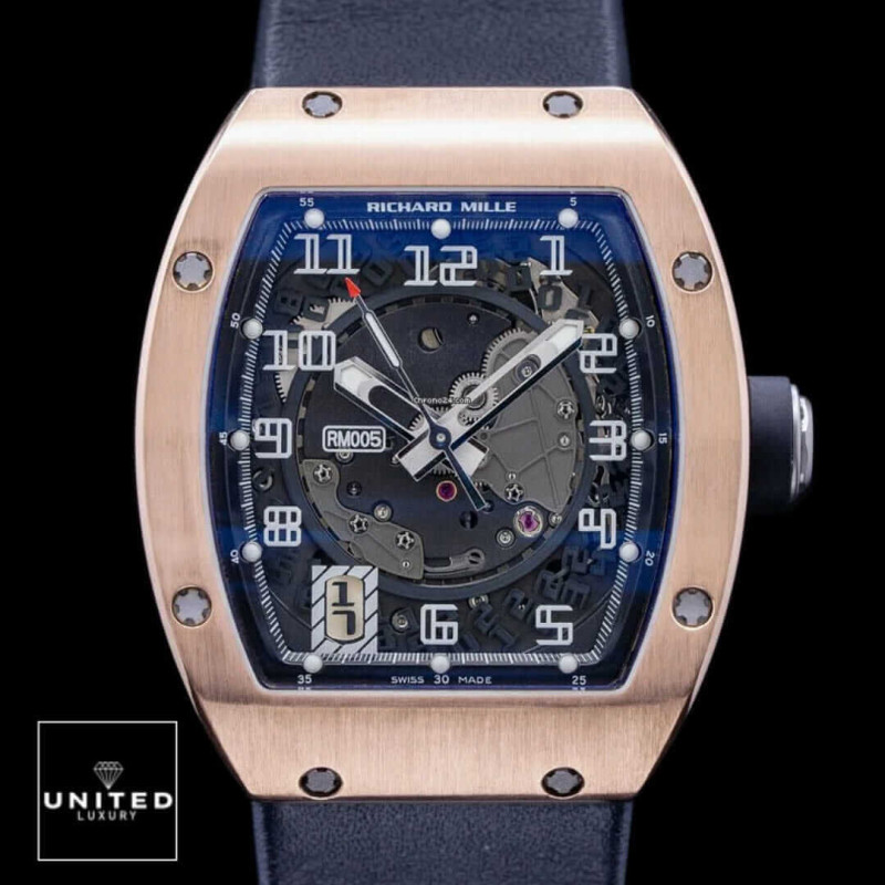 The Richard Mille RM005 Rose Gold Replica Replica is a high quality watch. It features an automatic movement with a caliber RM005 and a power reserve of 60 hours. It is certified within COSC limits fo...