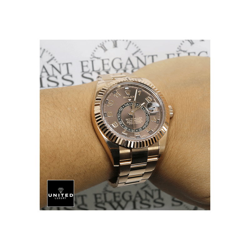 The Rolex Sky-Dweller Chocolate Dial Rose Gold 326935-0003 Oyster Replica is a striking watch. It features a 904L stainless steel case and bezel in a rose gold color. with a sapphire crystal and a 42....