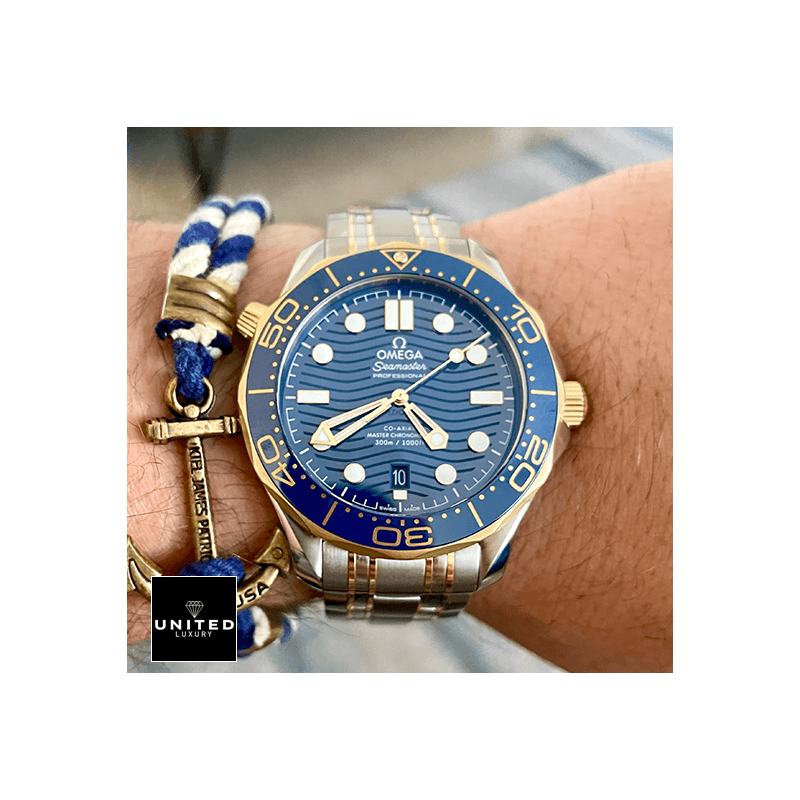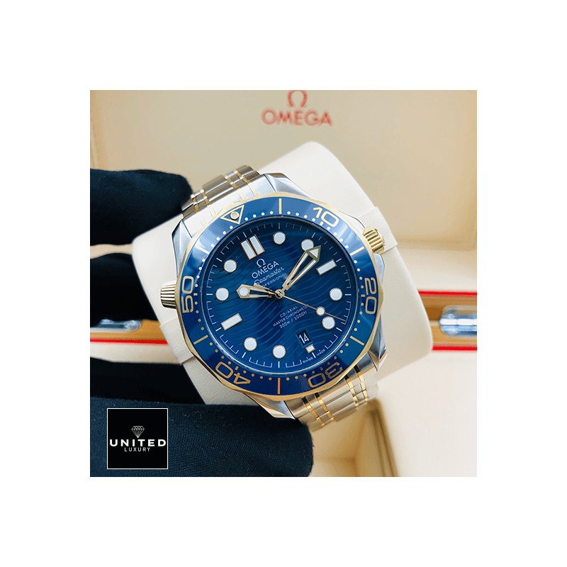 The Omega Seamaster Diver 300M Master Co-Axial Steel & Gold 210.20.42.20.03.001 Blue Dial Replica is a luxury watch. It features a 904L stainless steel case with a blue and yellow gold bezel. a sapphi...