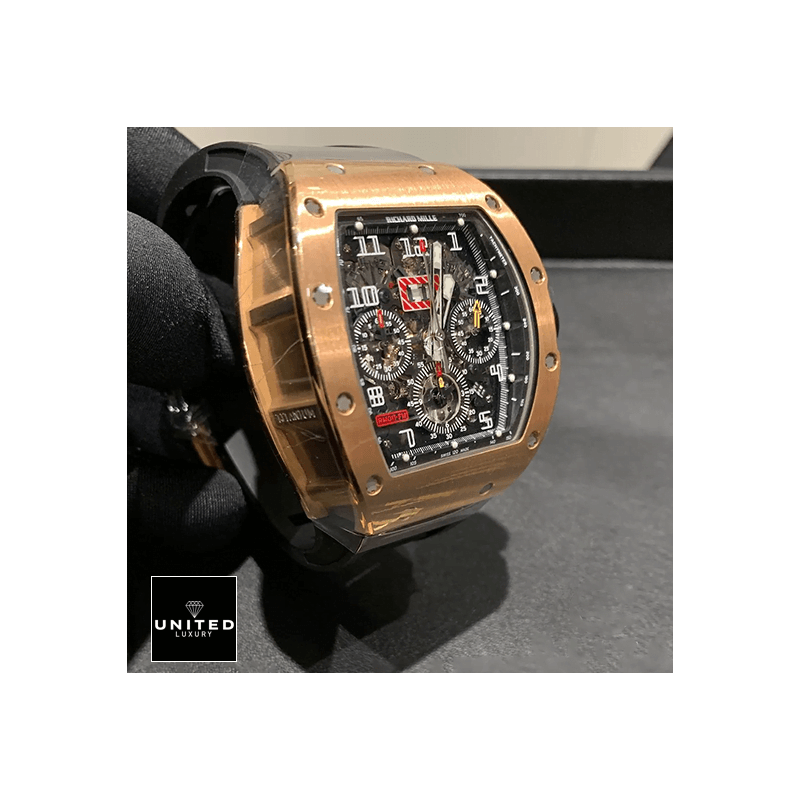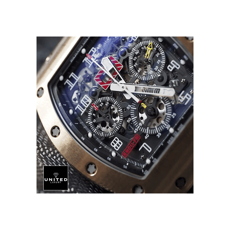 The Richard Mille RM 011-03 Rose Gold Flyback Chronograph Automatic Replica is a luxurious watch that is sure to turn heads. It features a 904L stainless steel case with a rose gold color and a skelet...