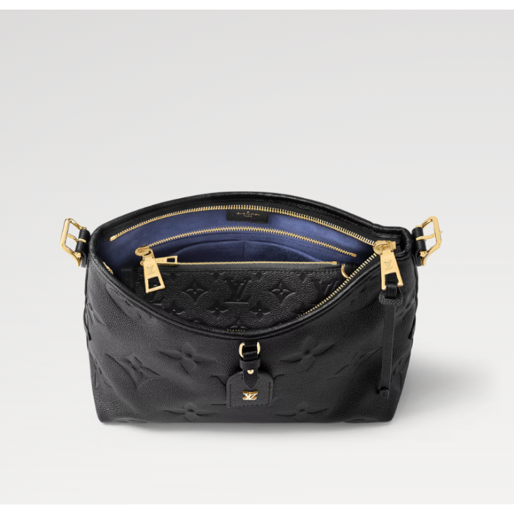 11.6 x 9.4 x 4.7inches(Length x Height x Width)BlackEmbossed supple grained cowhide leatherSupple grained cowhide-leather trimMicrofiber lining in NavyGold-color hardwareZip closure2 inside flat pocketsInside zipped pocketRemovable zipped pouch attached by a leather cord4 protective metal bottom studsFits: 6.7-inches smartphone, Zippy wallet, tissues, lipstick, earphones, sunglasses, keysWeight: 0.8 kgStrap:Removable, adjustableStrap drop:12.6 inchesStrap drop max:19.7 inches