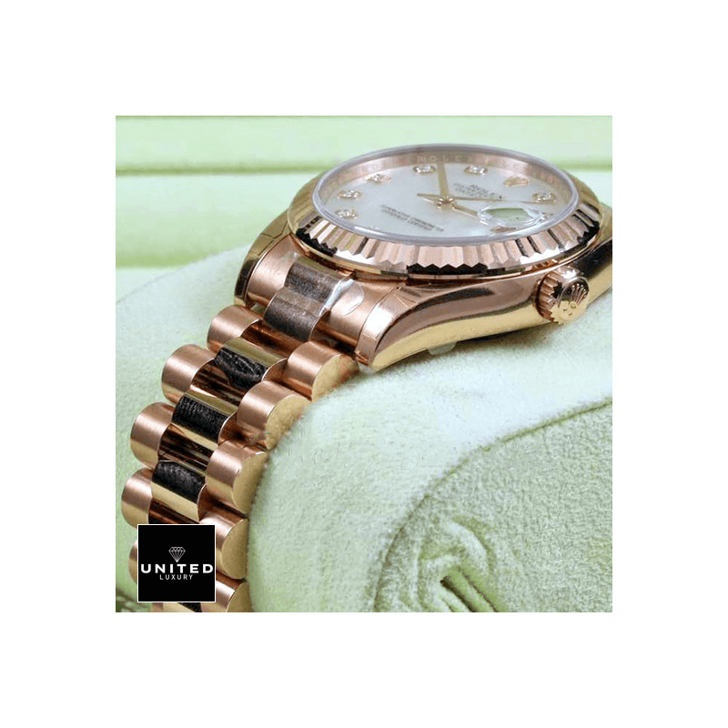 The Rolex Datejust 278275-0016 Rose Gold Automatic Mother Of Pearl Dial Oyster Replica is a high quality watch. It features a 904L stainless steel case in rose gold. with a sapphire crystal and adjust...