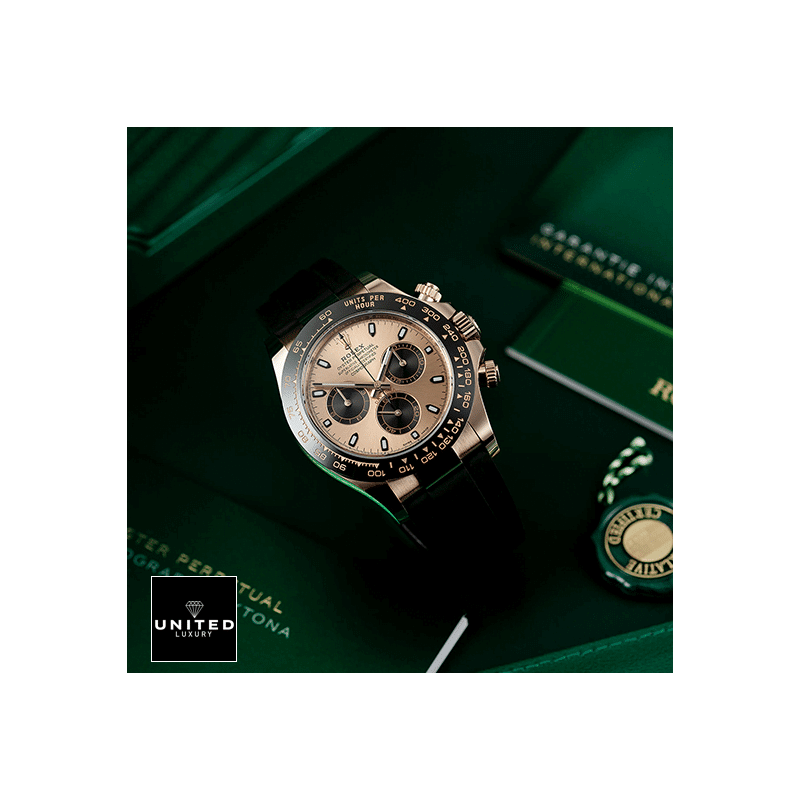 Imagine yourself stepping into a realm of uncompromising elegance and unparalleled craftsmanship. TheRolex Daytona Cosmograph 116515LN Rose Gold Dial Replicaembodies the pinnacle of luxury watchmaking. Its visual allure is immediately captivating. featuring a shimmering904L stainless steel caseenveloped in an exquisite rose gold finish. The grandeur extends to its hardenedsapphire crystal. ensuring resilience against the rigors of everyday use while maintaining the desired touch of opulence.At the heart of this masterpiece lies theautomatic caliber 4130 movement. a marvel of precision engineering. The watch boasts an impressive60-hour power reserve. guaranteeing continuous and reliable accuracy withinCOSC certification limitsof -3/+3 sec/day. One can almost hear the gentle hum of the gears and feel the sweep of the second hand. a meticulously crafted motion that signifies superior quality.Thebraceletis nothing short of a sensory delight. made from high-qualityrubber with adjustable linksthat promises a perfect fit for any wrist. Complementing this is a904L stainless steel fold claspin rose gold. combining both robustness and flair. The intimate touch of cold metal and supple rubber against your skin speaks volumes of the refined comfort you will experience.Gaze into thepink dial. where stick and dot indices. combined with 904L stainless steel stick hands. create a harmonious and elegant display. Each element is designed for both aesthetic appeal and functional clarity. from thehours. minutes. and small secondsto thechronograph and column wheel. The attention to detail in the markings. with precisely arranged serial numbers and cards. matches the caliber of the original Rolex to an astonishing degree.Coupled with a30m water resistance. this watch can gracefully withstand accidental splashes and brief immersions in water. ensuring that it remains a steadfast companion on all your adventures. The protection extends further with afull 2 years International United Luxury warranty. providing peace of mind with every wear.In essence. the Rolex Daytona Cosmograph 116515LN Rose Gold Dial Replica is not merely a watch; it is a statement. a companion. and a piece of art. Its stunning appearance. combined with top-notch functionality. makes it an unrivaled choice. Whether you’re looking for exceptional or an elegant timepiece like afake rose gold rolex. thisrose gold rolex replicaoffers the best of both worlds – authentically replicated style and dependability without compromise. Experience the timeless allure and precision that only a watch of this caliber can offer. and let it elevate your everyday moments to extraordinary heights.