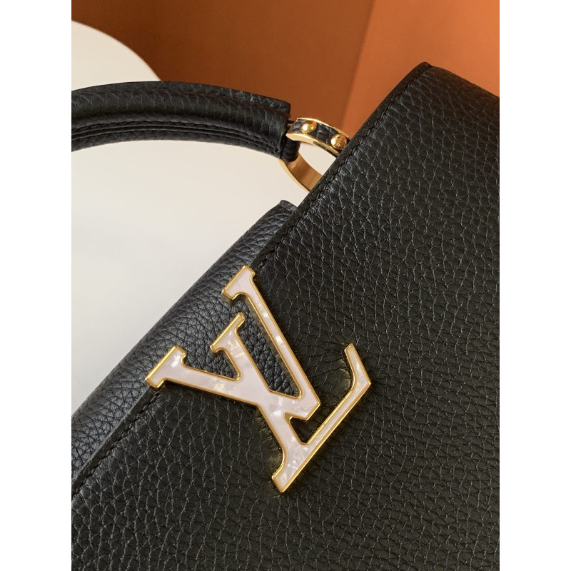 The Capucines small Flower Crown bag in full-grain Taurillon leather is embellished with Monogram floral motifs, each shaped from a delicate shell, while the LV logo echoes the floral motifs, giving t...