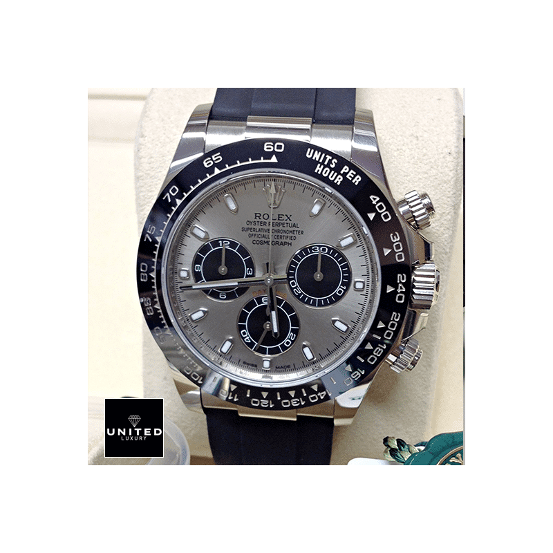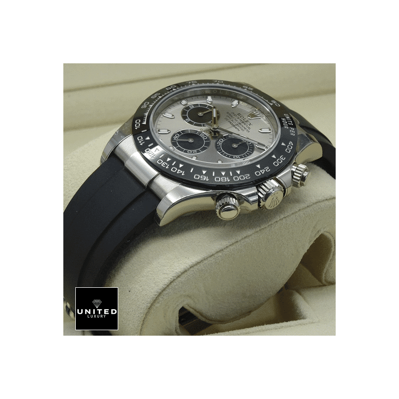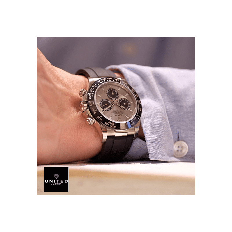 The Rolex Daytona 116519 replica is a stunning watch that is sure to turn heads. It features a 904L stainless steel case with a white gold finish. a 40.00 mm sapphire crystal. and a black rubber brace...