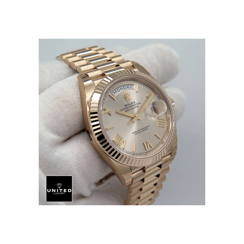 Imagine adorning your wrist with theRolex Day-Date Yellow Gold Champagne Dial 228238 Oyster Replica. a paragon of luxury and sophistication. This timepiece stands as a remarkable tribute to the classi...