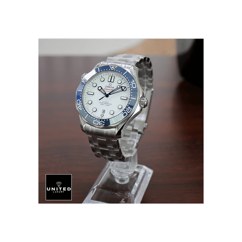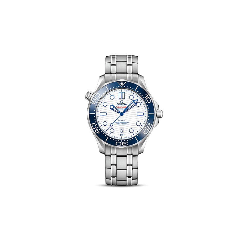 The Omega Seamaster Diver 300M Master Co-Axial 42 Tokyo Olympics – 522.30.42.20.04.001 Replica is a luxury watch. It features a 904L stainless steel case and bezel. with a blue bezel color and a sapphire crystal. The movement is an automatic caliber 8800 with a 60-hour power reserve and a precision of -3/+3 seconds per day within COSC certification limits. The dial is white with stick and dot indices. and the hands are 904L stainless steel stick hands.The bracelet is also 904L stainless steel with adjustable links and a deployment clasp. The watch is water-resistant up to 30m and comes with a full 2-year international warranty. It is a perfect 1:1 clone of the original. with the same serial numbers. markings. thickness. size. and movement. Your jeweler won’t be able to tell the difference!