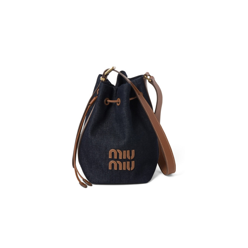 MIU MIU DENIM AND LEATHER LOGO BUCKET BAG 5BE090 (22.5*16*14cm)