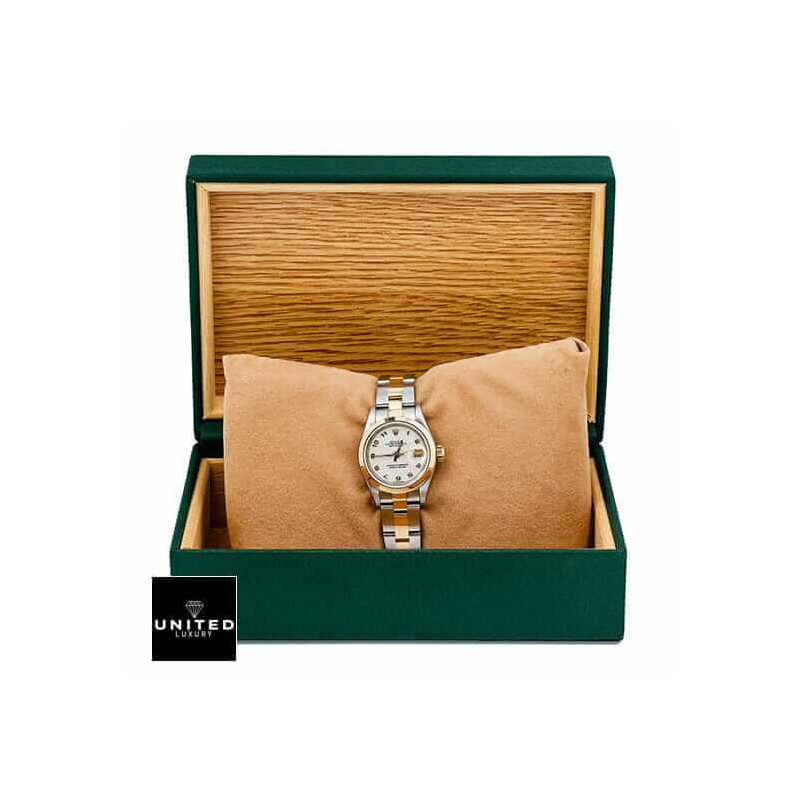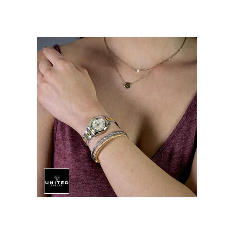 The Rolex Datejust Automatic Lady Yellow Gold Roman Numerals 179163 Oyster Replica is a stunning watch. It features a 904L stainless steel case with a yellow gold bezel and a sapphire crystal. The movement is an automatic caliber 2235 with a 60-hour power reserve and precision of -3/+3 seconds per day within COSC certification limits. The dial is white with Roman numerals and 904L stainless steel stick hands. The bracelet is an adjustable 904L stainless steel Oyster with yellow gold and steel links.This watch is a 1:1 super clone Swiss mechanism watch. with the same arrangeable serial numbers and cards. font. punto. and finishing for writings and markings. thickness and size. and powerful movement and caliber as the authentic watch. It is also water-resistant up to 30m and comes with a full 2-year international United Luxury warranty. For Japanese Mechanism watches. materials and movements may differ from the Swiss Mechanism watches.