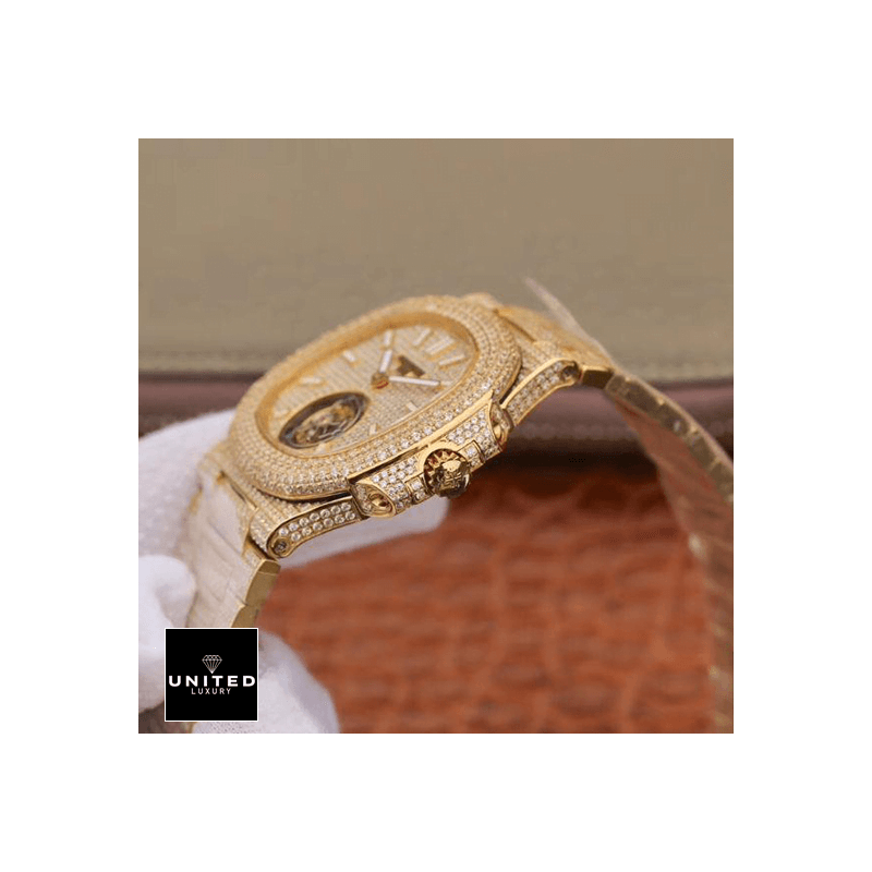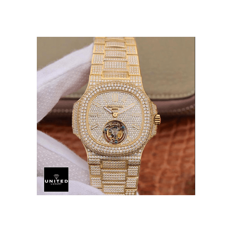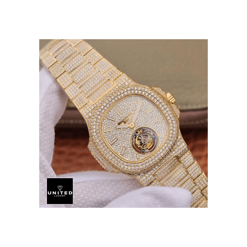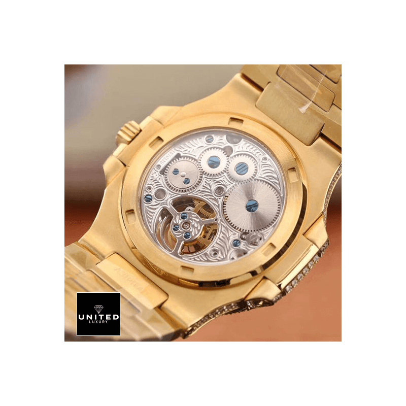 The Patek Philippe Nautilus 5719/10G-010 Replica is a high quality watch. It features a 904L stainless steel case and bezel. set with white gold and gems. The case is 40.00 mm in size and 8.50 mm thic...