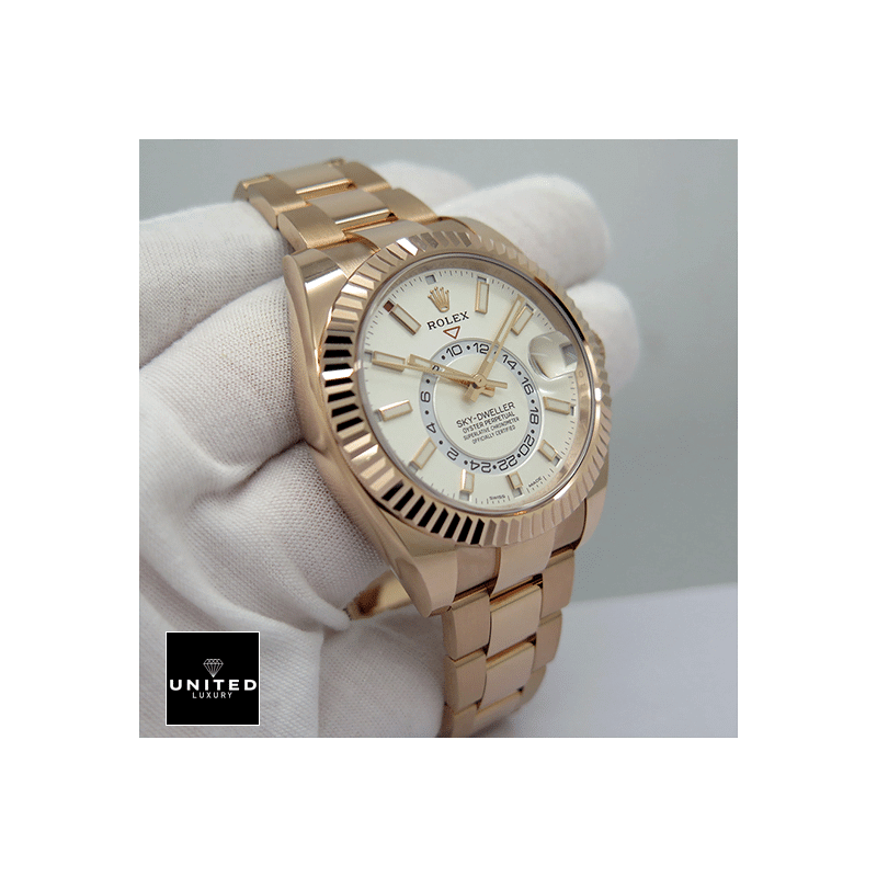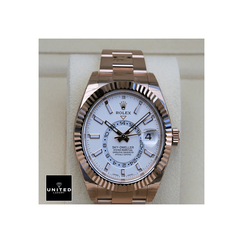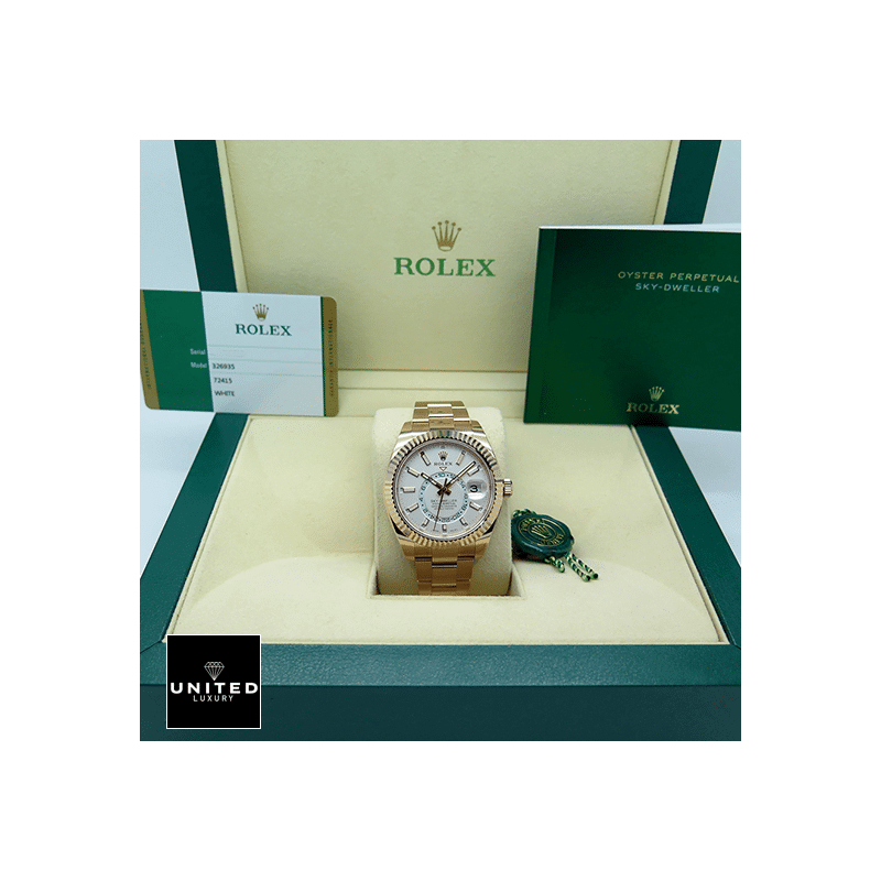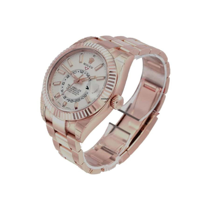 This Rolex Sky-Dweller Rose Gold White Dial 326935-0005 Oyster Replica is a striking watch. The case is made of 904L stainless steel and is rose gold in color. It has a sapphire crystal and is 42.00mm...