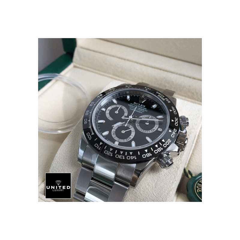 This Rolex Daytona 116509 replica watch is a perfect 1:1 clone of the original. It features a 904L stainless steel case and ceramic white gold color. The bezel is also made of 904L stainless steel and...