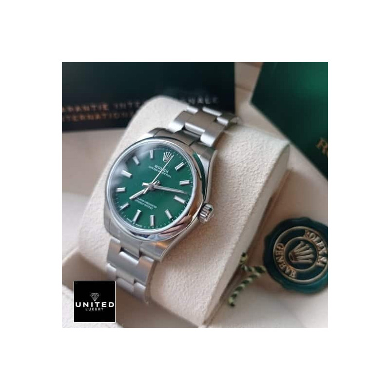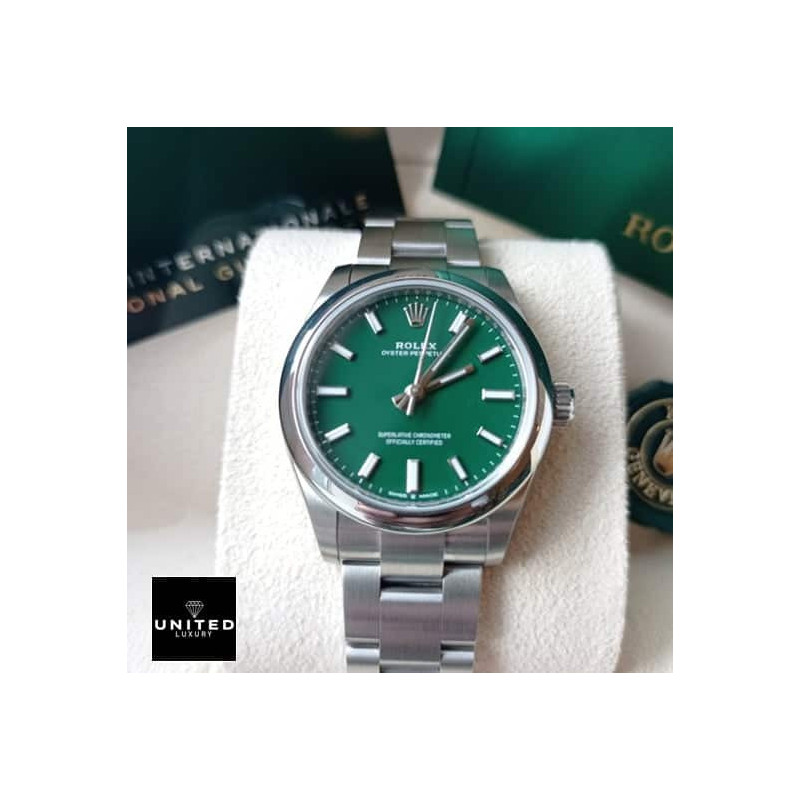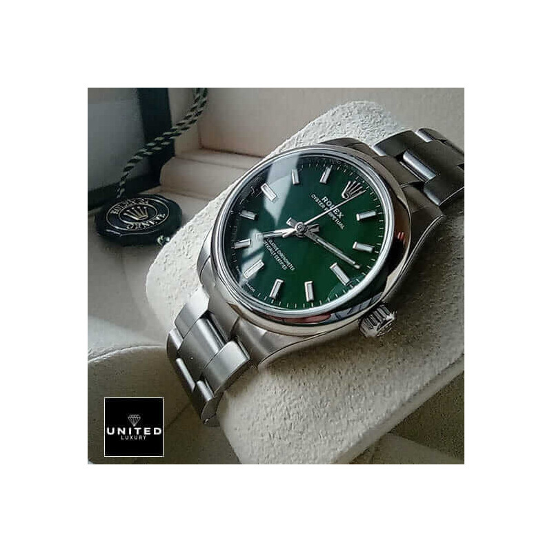 Introducing theRolex Oyster Perpetual 277200 Green Dial Replica—a masterpiece uniquely designed for those who hold elegance and precision in high regard. Imagine sliding this exquisite timepiece onto your wrist: its alluring green dial immediately catches the light. casting a vibrant yet sophisticated hue that is certain to turn heads and spark conversations. This replica isn’t just about aesthetics; it’s a perfect symphony of form and function. delivering a watch-wearing experience that mirrors the prestige and craftsmanship of an authentic Rolex.Crafted with meticulous attention to detail. this stunning watch replicates the luxurious feel and look of the original. The beautifully vivid green dial is an instant eye-catcher. creating a striking contrast against thesturdy stainless steel case and bracelet. The case and bracelet are not only incredibly durable but also exude a refined finish that offers a comfortable. yet secure. fit. Picture the smooth cold steel against your skin. and the subtle weight reminding you of the quality you are wearing.What truly elevates the Rolex Oyster Perpetual 277200 Green Dial Replica is its performance and reliability. This watch is designed for those who value dependable timekeeping—it ticks with the same crisp accuracy as you’d expect from any prestigious Swiss timepiece. Imagine never having to second-guess the time; every glance at your wrist affirms that you are on schedule and in control. Whether you are attending a formal event or dealing with everyday demands. this watch performs impressively in any setting.Additionally. this watch makes for an exceptional gift. The moment your friend or loved one opens the box to reveal the gleaming dial and feels the cool. solid build of the stainless steel. they’ll immediately recognize the thought and quality that went into the gift. They will appreciate it as not just a watch. but a token of fine craftsmanship and timeless style.Simply put. theRolex Oyster Perpetual 277200 Green Dial Replicaoffers watch enthusiasts a unique blend of style. durability. and precise functionality. It stands as an affordable alternative to the authentic Rolex. yet does not compromise on the luxurious feel and reliability that one expects from such timepieces.Don’t miss the opportunity to elevate your collection with thisgreen dial replica. Order now and indulge in the satisfaction of wearing a high-quality. eye-catching timepiece.Embrace the luxury. without the hefty price tag—let this Rolex Green Dial Replica accentuate your style every single day. Forget the fleeting allure of a; this replica is crafted to provide lasting joy and intrinsic value.