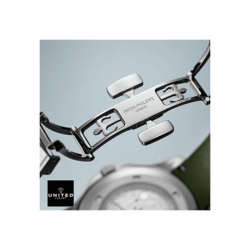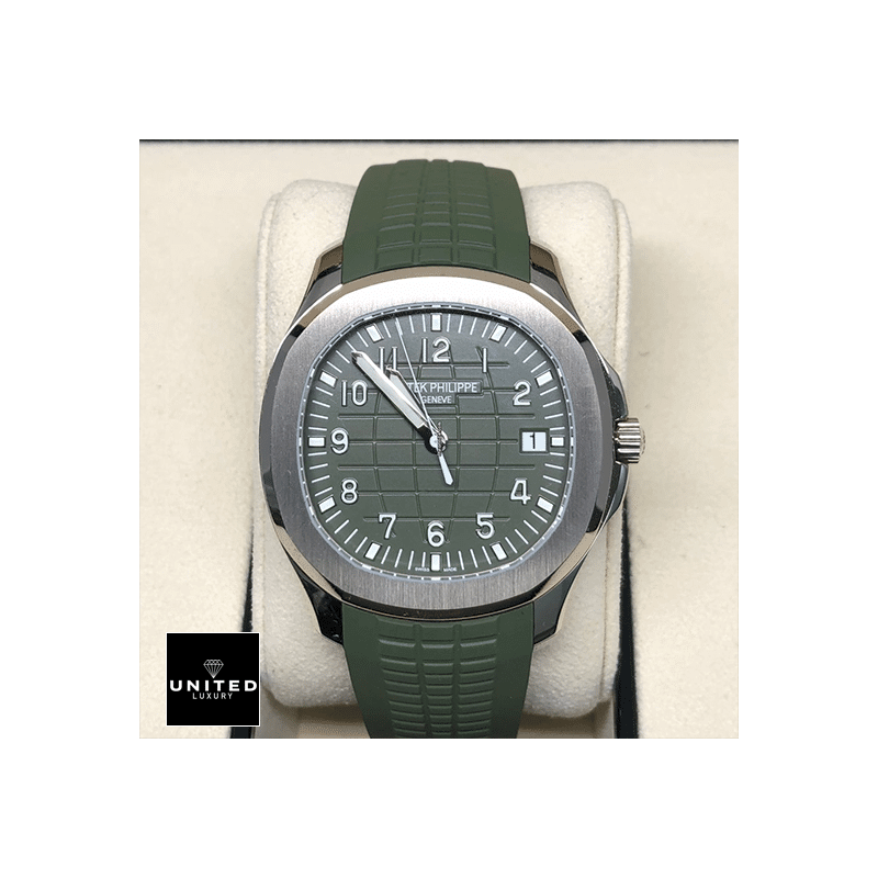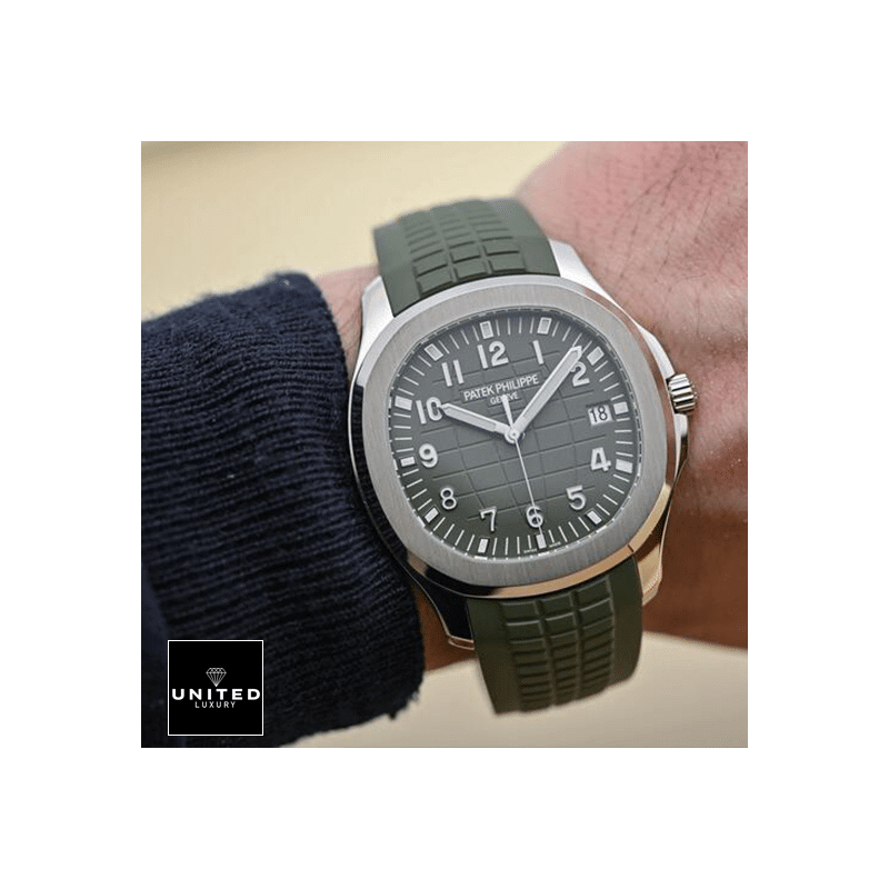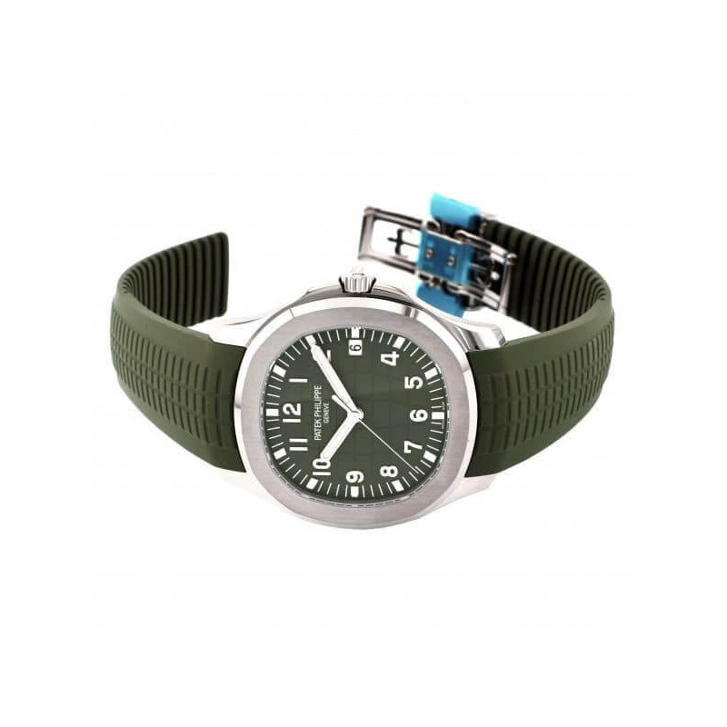 The Patek Philippe Aquanaut JUMBO Khaki Green 5168G-010 Replica is a high quality watch. It features a 904L stainless steel case with a white gold color and a sapphire crystal. The movement is an automatic caliber 324 S C with a power reserve of 60 hours and a precision of (-3/+3 sec/day) within COSC certification limits. The second hand has a sweep motion.The bracelet is made of rubber with adjustable links and a 904L stainless steel fold clasp in white gold. The dial is green with Arabic numerals and stainless steel stick hands. It has a water resistance of 30m and comes with a full 2 year international warranty. This watch is a perfect 1:1 super clone Swiss mechanism watch and is indistinguishable from the genuine article.