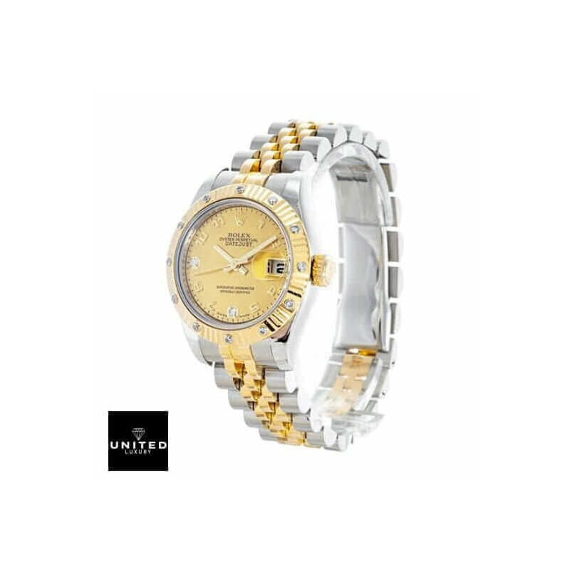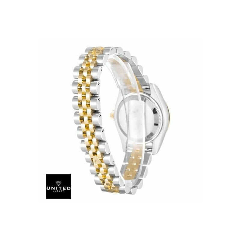 ‘DESCRIPTIONThis Rolex Datejust 179313 replica is a stunning piece of craftsmanship. It features a 904L stainless steel case with a yellow gold and gem-set bezel. and a sapphire crystal. The Jubilee b...
