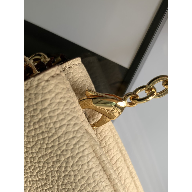 11.6 x 9.4 x 4.7inches(Length x Height x Width)Tourterelle Gray / Crème BeigeEmbossed supple grained cowhide leatherSupple grained cowhide-leather trimMicrofiber lining in NavyGold-color hardwareZip c...
