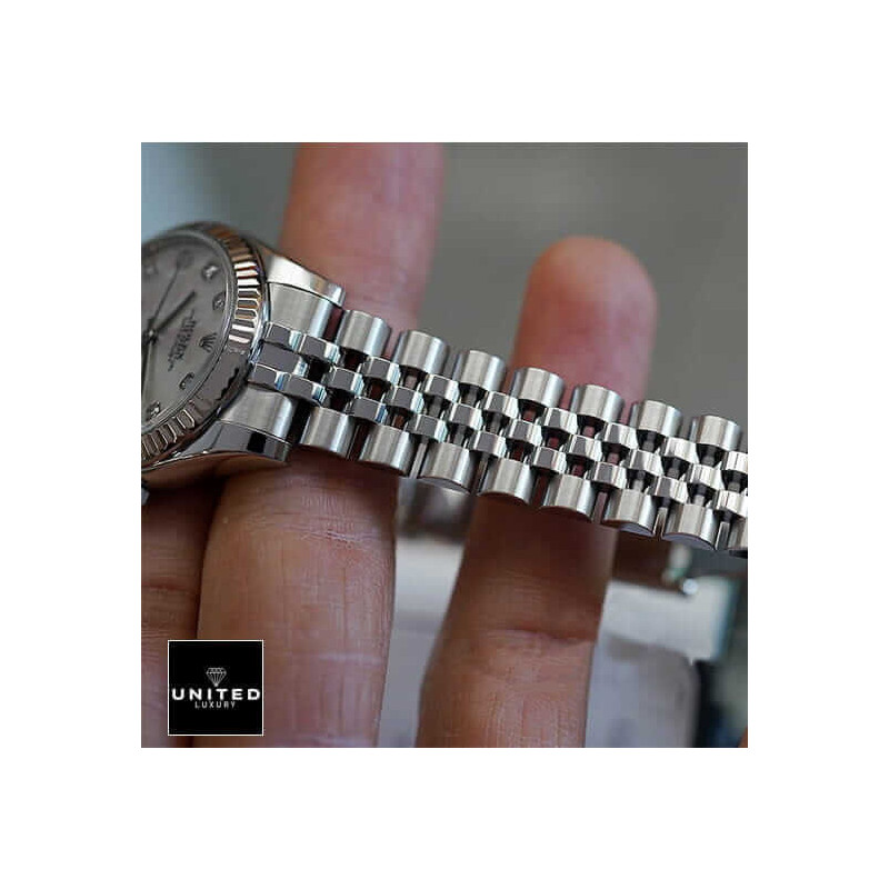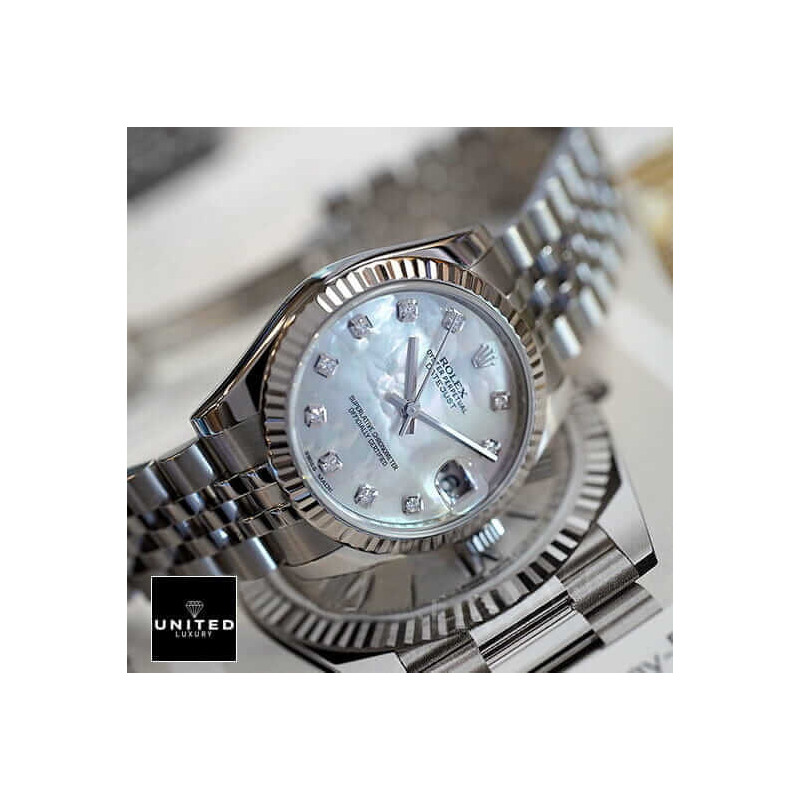This Rolex Datejust 178274-0042 Steel & White Gold Automatic Mother Pearl Diamond Dial Jubilee Replica is a high quality watch. It features a 904L stainless steel case and bezel. with a steel color an...