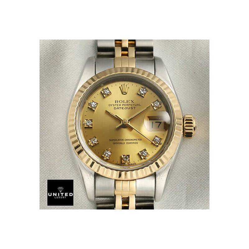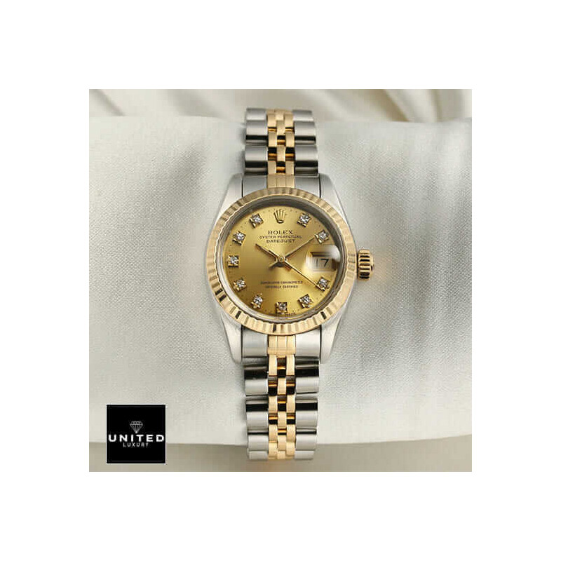 The Rolex Datejust Yellow Gold Steel Diamond Dial Ladies 69173 Jubilee Replica is more than just a timepiece – it’s an epitome ofluxuryandprecisionredefined. Envision a masterpiece that radiates elegance through its meticulous design and unmatched quality. echoing the timeless allure of the famed Rolex brand. Made to gleam under any light. this exquisite replica captures the charm of the original Rolex Datejust. embodying a perfect fusion of sophistication and functionality.With its captivating design. the Rolex Datejust 69173 replica presents a robust yet elegant904L stainless steel casemeticulously finished with a stunning yellow gold and steel polish. The 26.00 mm sapphire crystal. known for its hardness and scratch-resistant properties. ensures the dial remains pristine and clear. The adjustable Jubilee bracelet. formed from the same high-quality 904L stainless steel with a complementing yellow gold and steel finish. wraps around the wrist with a balance of comfort and luxurious appeal.The dial of this replica whispers opulence through itschampagne hue. magnificently accentuated by gem-set and dot indices that catch the eye with every glance. The904L stainless steel hands. moving seamlessly. further accentuate the dial’s aesthetic. creating a harmonious visual that delights the beholder. Every inch of this timepiece is crafted to perfection. ensuring that even the closest inspection reveals nothing but perfection.Functionality meets luxury in the heart of this replica. thanks to the reliableautomatic caliber 2135 movement. With a remarkable 60-hour power reserve. and precision boasting a -3/+3 seconds per day certification within COSC limits. this watch isn’t just about looks – it’s aboutperformance. The addition of a sweep second hand provides an extra layer of precision. ideal for those who demand both beauty and accuracy. Moreover. with a water resistance of up to 30 meters. it stands resilient in various conditions. reinforcing its practicality.Combined with afull 2-year international warranty. this watch offers peace of mind. allowing you to indulge in its brilliance without hesitation. Meticulously crafted to be a perfect 1:1 clone. even the most discerning jeweler will find it challenging to distinguish from the authentic piece. making it theyou can find.Immerse yourself in the world of untarnished elegance and matchless precision with the Rolex Datejust Yellow Gold Steel Diamond Dial Ladies 69173 Jubilee Replica. It promises to be not just a watch. but a statement of enduring luxury and uncompromised quality. Your wrist deserves nothing less.