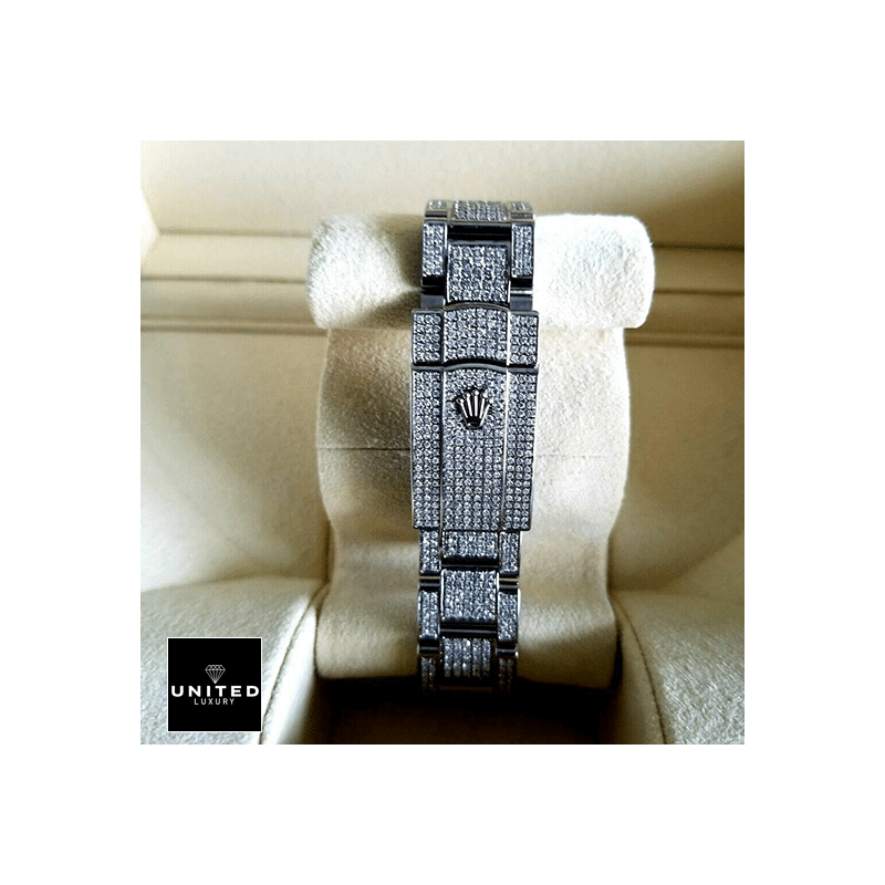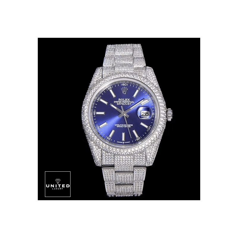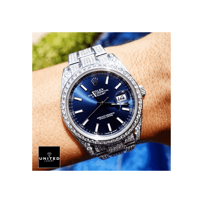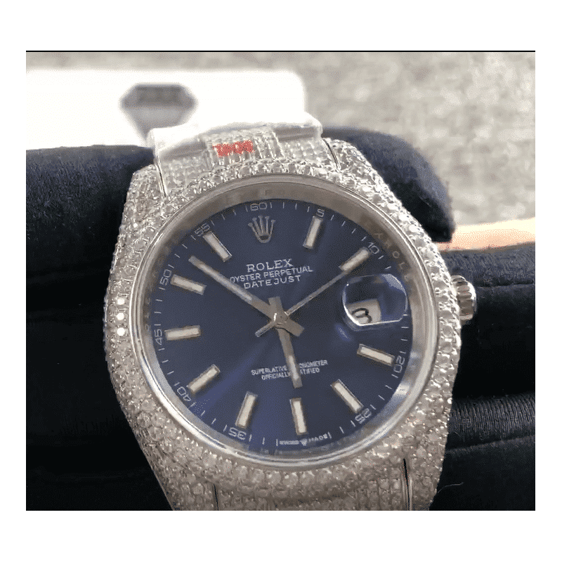 Imagine adorning your wrist with theRolex Datejust White Gold Blue Dial Iced Out 126300 Replica. a masterpiece that marries timeless elegance with striking modernity. This exquisite is not just a mere imitation; it is a paragon of luxurious craftsmanship. capable of elevating any occasion with its understated opulence.Crafted with meticulous attention to detail. this watch features a 904L stainless steel case. renowned for its superior corrosion resistance and high polish that maintains its luster even after years of wear. The gem-set bezel sparkles brilliantly. capturing the light in a thousand dazzling fragments. making thisfake iced out rolexa true spectacle on your wrist. The sapphire crystal. nearly as hard as a diamond. offers unparalleled scratch resistance. ensuring the pristine clarity of the dial remains untouched.The heart of this timepiece is an automatic caliber movement with an impressive 60-hour power reserve. ensuring reliability no matter where life takes you. With the precision of -3/+3 sec/day within COSC certification limits. it guarantees you stay on time. whether traversing time zones or simply keeping to your daily schedule. The gold blue dial. adorned with stick indices. is a canvas of serene elegance; the hue shifting subtly in varying light. engaging your visual senses with its deep. rich tones. The 904L stainless steel stick hands glide seamlessly over the face. their movement a testament to the precise engineering within.The bracelet. also crafted from 904L stainless steel. offers both durability and style. featuring an oyster clasp with adjustable links to ensure a perfect fit. Its cool. smooth texture rests comfortably against your skin. a daily reminder of the craftsmanship and luxury embodied in thisiced out rolex replica. Tested for water resistance up to 30 meters. it offers peace of mind. safeguarding against everyday mishaps.What sets this watch apart is its impeccable 1:1 super clone Swiss mechanism. so precise and finely detailed that even seasoned jewelers would struggle to distinguish it from the authentic model. With a full 2-year international warranty. thisiced out replicacombines peace of mind with uncompromising quality.In conclusion. theRolex Datejust White Gold Blue Dial Iced Out 126300 Replicais not just a watch; it’s a statement. It represents the perfect blend of luxury and functionality. a testament to those who appreciate the finer things in life. Allow this timepiece to be your daily companion. a symbol of elegance and precision that enhances any outfit. day after day. This watch is not just a purchase; it’s an investment in style. sophistication. and reliability.
