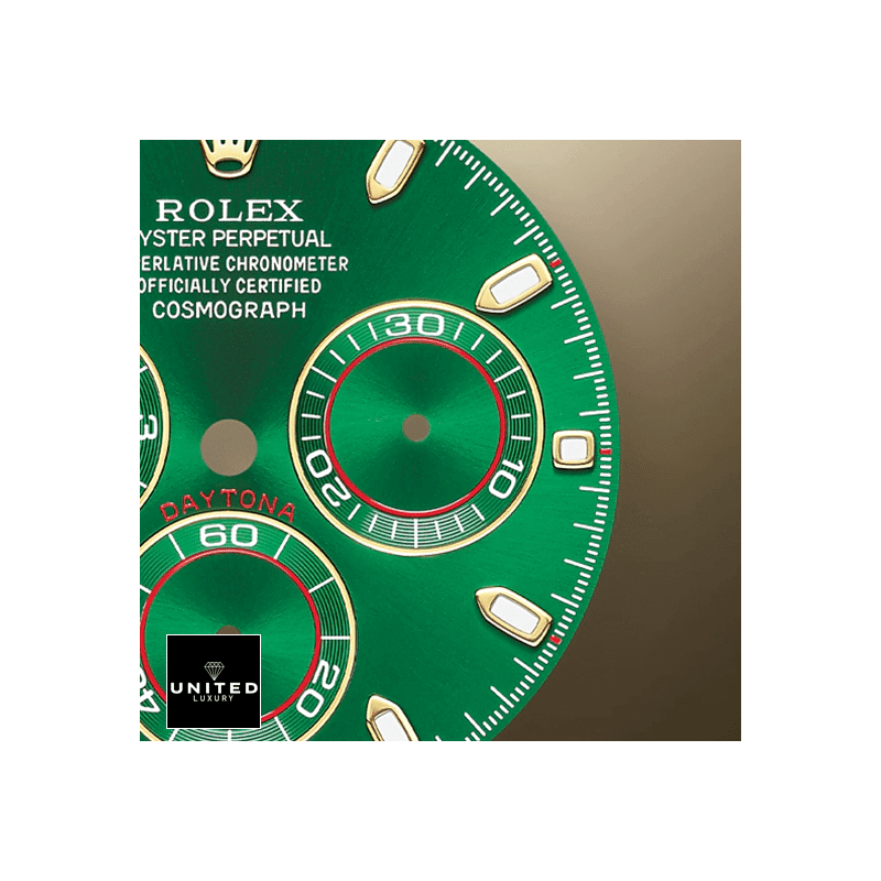 ‘DESCRIPTIONThis Rolex Cosmograph Daytona Oyster Yellow Gold Green Dial 116508-0013 Replica is a high quality watch. It features a 904L stainless steel case with a yellow gold color and a sapphire crystal. The movement is an automatic caliber 4130 with a power reserve of 60 hours and a precision of (-3/+3 sec/day) within COSC certification limits. The bracelet is also made of 904L stainless steel with an adjustable link and a fold clasp in yellow gold.The dial is green with stick and dot indices and 904L stainless steel stick hands. It has a variety of functions including hours. minutes. small seconds. chronograph. and chronometer. It is also water-resistant up to 30m and comes with a full 2 year international warranty. This watch is a perfect replica of the original. with the same serial numbers. writings. markings. thickness. size. and movement. It is truly a work of art.GALLERY