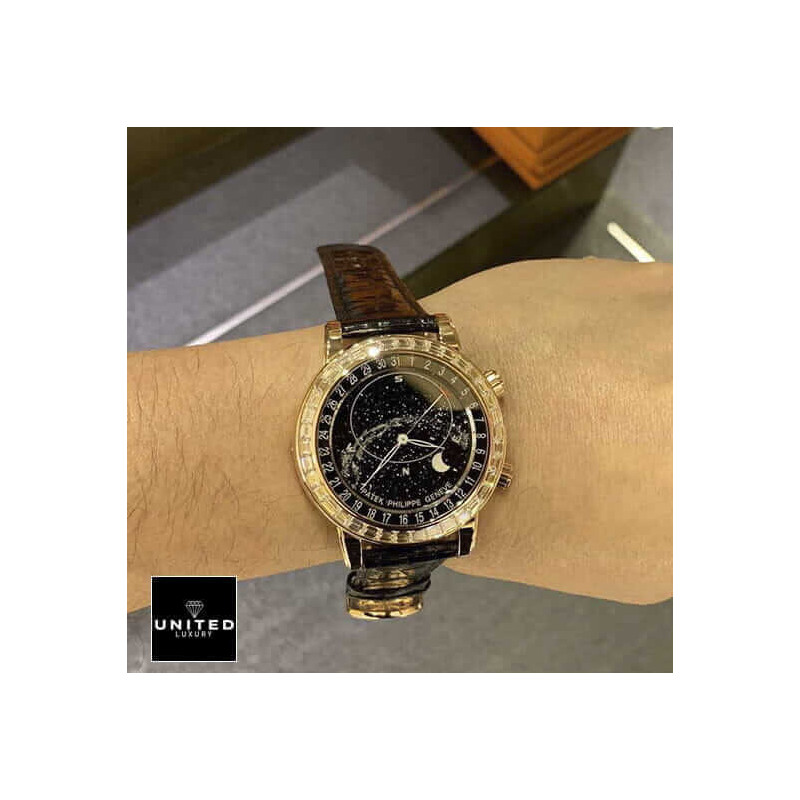 The Patek Philippe Nautilus 6104R-001 Replica is a high quality watch. It features a 904L stainless steel case with a rose gold color and a gem-set bezel. The movement is an automatic caliber 240 LU CL C with a power reserve of 60 hours and a precision of -3/+3 seconds per day within COSC certification limits. The second hand has a sweep motion. The bracelet is made of croco leather with adjustable links and a 904L stainless steel fold-over clasp.The dial is black with stick and dot indices and 904L stainless steel stick hands. The watch has a water resistance of 30m and comes with a 2 year international warranty. It is a perfect 1:1 super clone Swiss mechanism watch that even your jeweler won’t be able to tell the difference. Please note that for Japanese Mechanism watches. materials and movements may differ from the Swiss Mechanism watches.