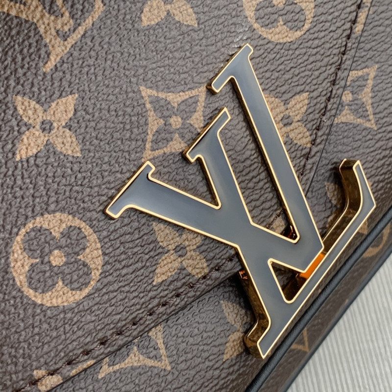 The VENDOME medium-sized handbag harks back to the 2012 design of the Pallas handbag, showcasing an aesthetic fusion of materials and colors. Monogram canvas is paired with grained leather on the side...