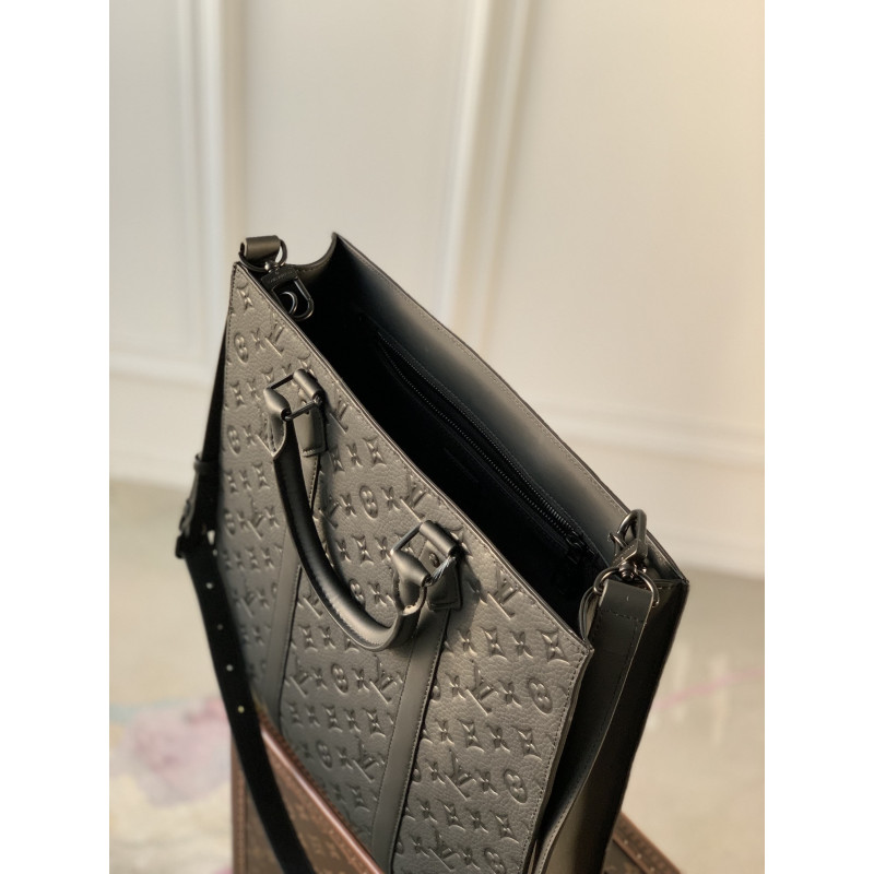 This Sac Plat handbag is crafted from Monogram-embossed Taurillon leather, featuring straight lines, distinct edges, leather side straps, and rolled leather handles that draw attention and showcase a ...