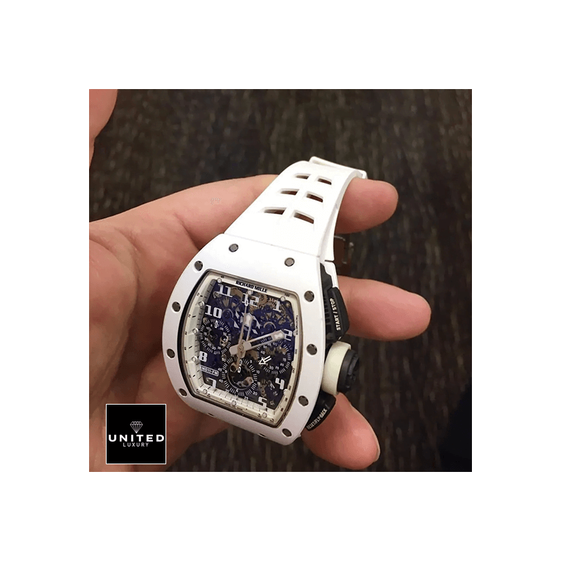 The Richard Mille RM011-FM Felipe Massa Flyback Limited Chronograph Replica is a high quality watch. It features a titanium case and bezel. with a white bezel color and a sapphire crystal. The movement is an automatic RMAC1 caliber with a power reserve of 60 hours and a precision of (-3/+3 sec/day) within COSC certification limits. The dial is skeleton with Arabic numerals and 904L stainless steel hour markers and hands. The bracelet is a rubber type with adjustable links and a titanium double-fold clasp.The watch is water-resistant up to 30m and comes with a full 2 year international warranty. It is a 1:1 super clone Swiss mechanism watch. with the same arrangeable serial numbers and cards. font. punto. and finishing for writings and markings. thickness and size. and powerful movement and caliber. It is the perfect replica of the authentic watch and even your jeweler won’t be able to tell the difference.