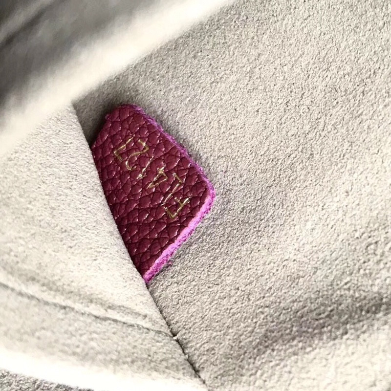 11.6 x 9.4 x 4.7inches(Length x Height x Width)Tourterelle Gray / Crème BeigeEmbossed supple grained cowhide leatherSupple grained cowhide-leather trimMicrofiber lining in NavyGold-color hardwareZip c...