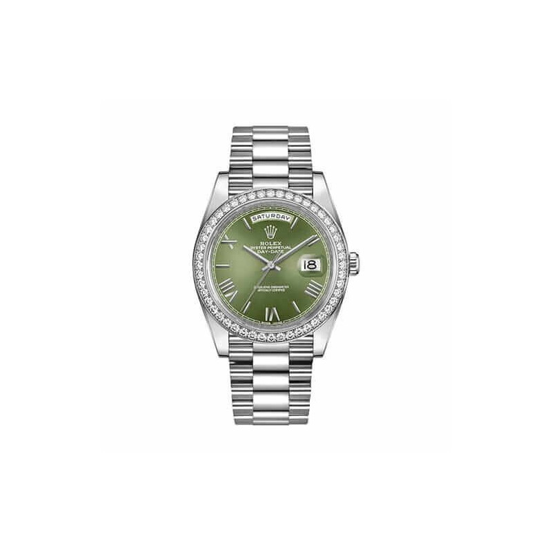 This Rolex Day Date Olive Diamond Replica is a stunning watch. It features a 904L stainless steel case and bezel. with a steel color. The crystal is made of sapphire. and the size is 40.00 mm. The bra...