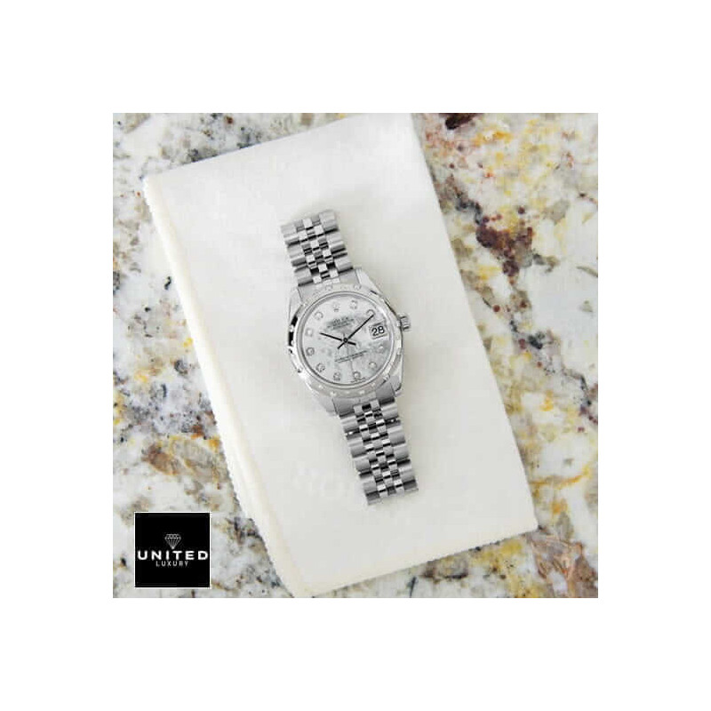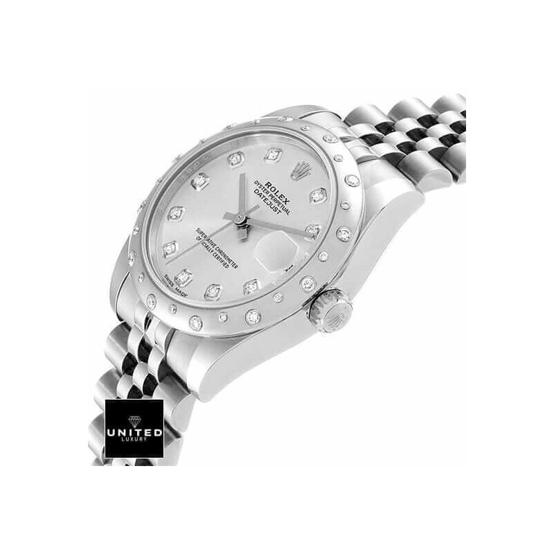 The Rolex Datejust 178344 Steel & White Gold Automatic Mother Pearl Diamond Dial Jubilee Replica is a high quality watch. It features a 904L stainless steel case and bezel. with a steel and gem-set color. The sapphire crystal is 31.00mm in size and the movement is an automatic caliber 2235 with a 60-hour power reserve and precision of -3/+3 sec/day within COSC certification limits. The bracelet is a 904L stainless steel Jubilee with adjustable links and a fold clasp.The dial is grey with gem-set indeces and 904L stainless steel hour-markers and stick hands. It has the functions of hours. minutes. seconds. date. and chronometer. It has passed the 30m water resistance test and is under the protection of a full 2-year international United Luxury warranty. This watch is a perfect replica of the original. with the same arrangeable serial numbers and cards. font. punto. and finishing for writings and markings. thickness. size. and powerful movement and caliber.