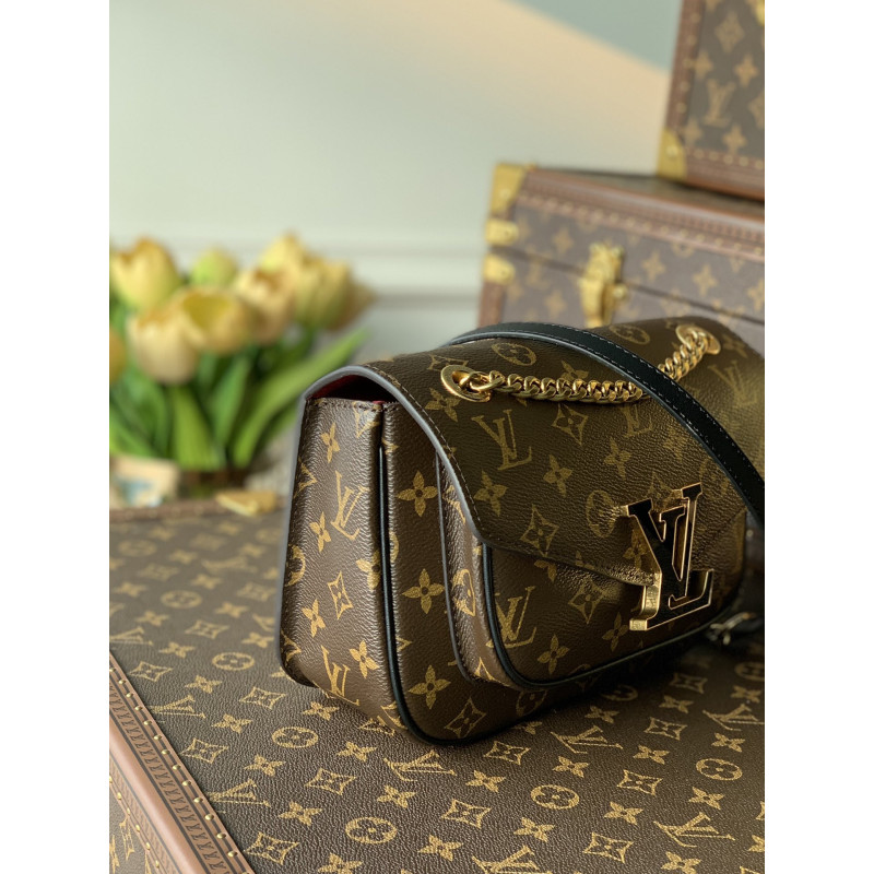 The VENDOME medium-sized handbag harks back to the 2012 design of the Pallas handbag, showcasing an aesthetic fusion of materials and colors. Monogram canvas is paired with grained leather on the side...