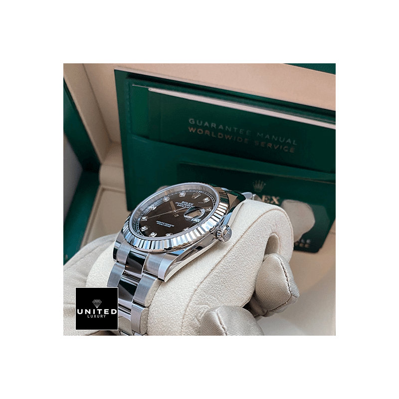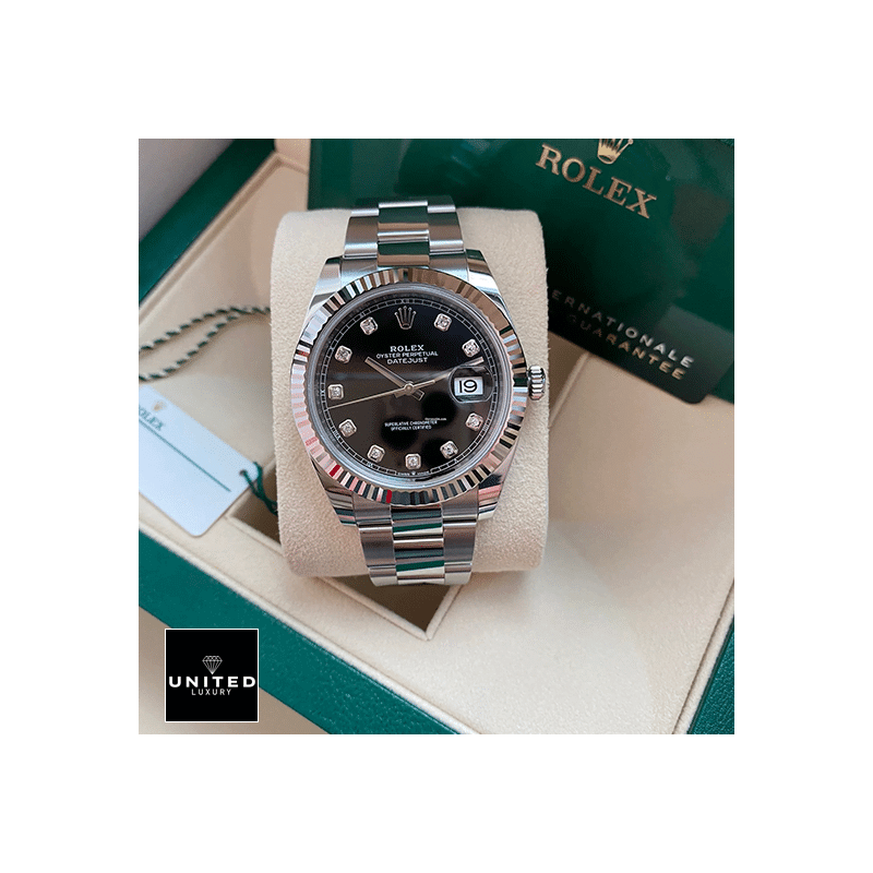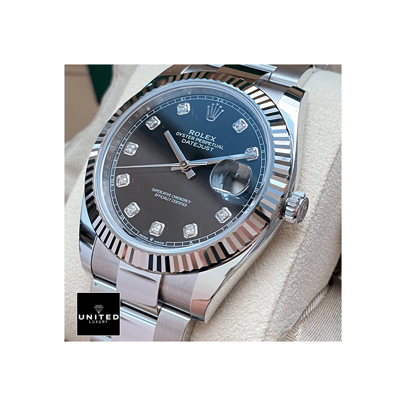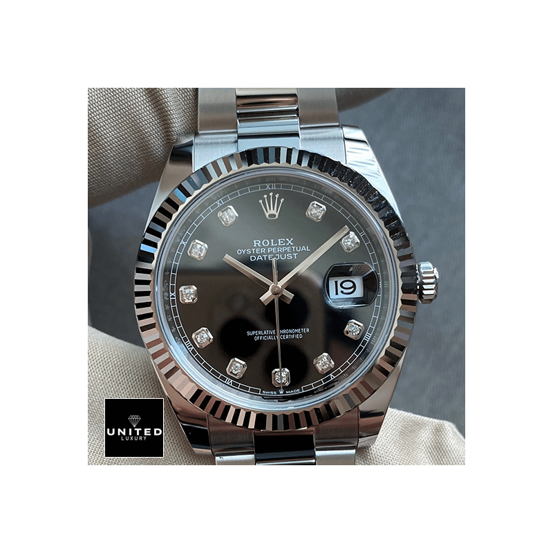 This Rolex Datejust 126334 replica watch is a stunning piece of craftsmanship. It features a 904L stainless steel case and bezel. with a black dial and gem-set indices. The movement is an automatic caliber 3235 with a 60-hour power reserve and precision of -3/+3 seconds per day within COSC certification limits. The second hand has a sweep motion. The bracelet is an adjustable 904L stainless steel Oyster with a fold clasp.This watch is water-resistant up to 30m and comes with a full 2-year international warranty. It is a 1:1 super clone Swiss mechanism watch. with the same serial numbers and cards. font. punto. and finishing for writings and markings. thickness. size. and powerful movement and caliber as the authentic watch. Your jeweler won’t be able to tell the difference!