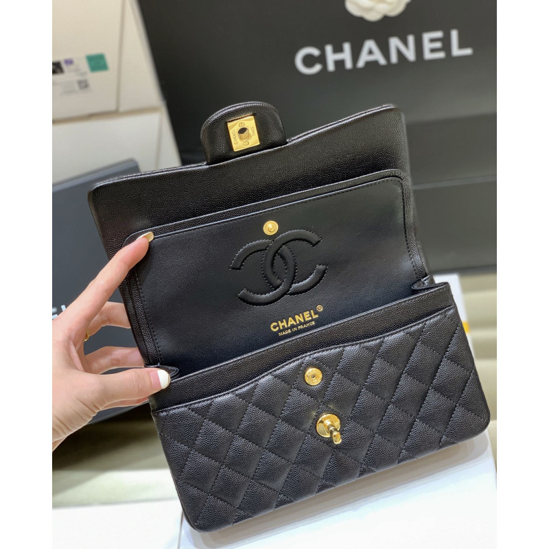 Ch@nel Flap Bag-(Black Inside)Caviar-23CM
