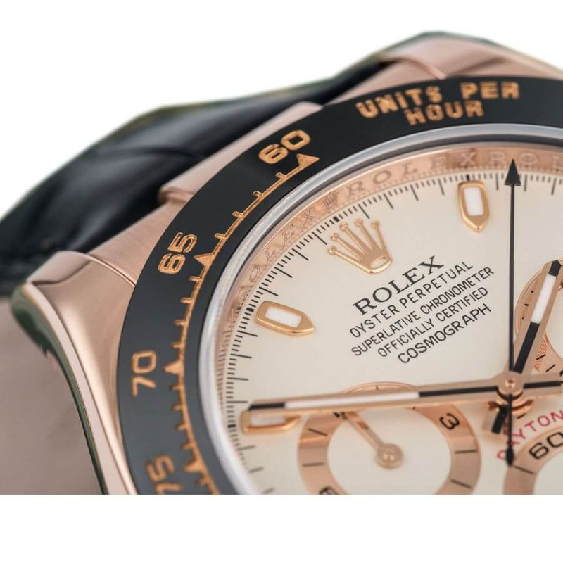 Introducing the “Rolex Cosmograph Daytona White Dial 116515LN-0003 Replica.” a stunning yetcrafted for those who seek the unparalleled prestige and precision of the original without compromising on quality or authenticity. Imagine yourself slipping this luxurious timepiece onto your wrist. feeling the cool touch of the 904L stainless steel against your skin. the rose gold case shimmering elegantly in the light. and the bold black bezel exuding an aura of sophistication.This impressive watch showcases a40.00 mm casethat feels both substantial and comfortable on the wrist. while its12.40 mm thicknessensures a sleek profile that fits effortlessly under a shirt cuff. The pristine. white dial is adorned with stick and dot indices that catch the eye. complemented by hands crafted from robust 904L stainless steel. Powered by the automatic caliber 4130 movement. this watch boasts an impressive power reserve of60 hoursand maintains precision within COSC certification limits at (-3/+3 sec/day).The black. adjustable leather bracelet lends an additional touch of luxury and comfort. fitting snugly with its 904L stainless steel folding clasp in matching rose gold. Each element of the Rolex Cosmograph Daytona White Dial 116515LN-0003 Replica is designed to mirror the original with astonishing accuracy. from the identical serial numbers and cards to the exacting font. punto. and meticulous finishing of the markings. The thickness. size. and power of the movement and caliber have been ingeniously replicated to ensure an authentic experience.This exquisite replica is backed by afull 2 years International United Luxury warranty. offering peace of mind and reliability. Whether you opt for the Swiss Mechanism or the Japanese Mechanism. rest assured the meticulous craftsmanship and premium materials used will make a statement of elegance and precision.Pamper yourself with the unrivaled grace and impeccable design of the Rolex Cosmograph Daytona White Dial 116515LN-0003 Replica. This iconic timepiece not only embodies the essence of luxury but also exudes a sense of accomplishment and refined taste. Convince yourself of its superiority and let this masterpiece become an essential part of your everyday elegance.