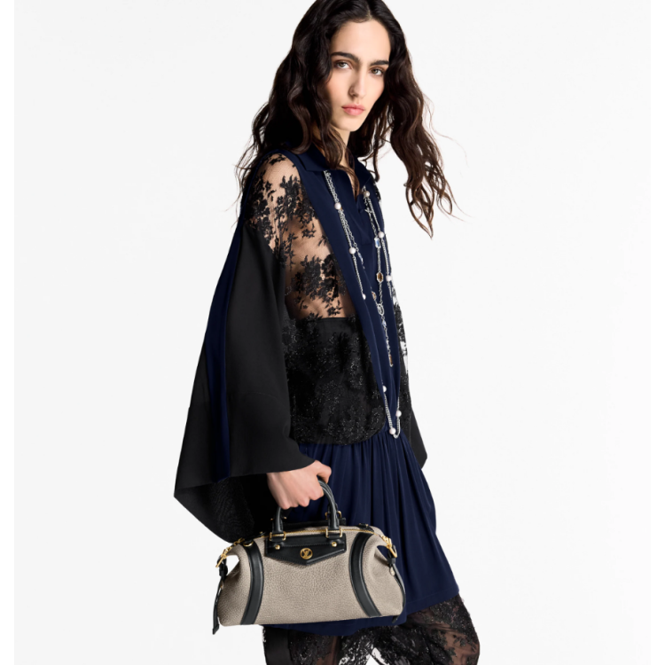 11.8 x 4.7 x 4.7inches(Length x Height x Width)GrayLambskin leatherCowhide-leather trimTextile Monogram pattern liningGolden toned hardwareZip closureLeather plastronSide sliding strapsFits: 6.7-inches smartphone, Sarah Long Wallet, sunglasses, keysStrap:Removable, adjustableStrap drop:11.8 inchesStrap drop max:17.7 inchesHandle:Double