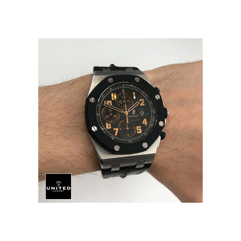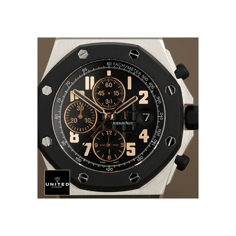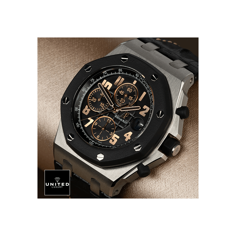 The Royal Oak Offshore Replica from Audemars Piguet is a striking watch. It features a 904L stainless steel case with a black bezel and a sapphire crystal. The movement is an automatic AP 3126 / 3840 ...
