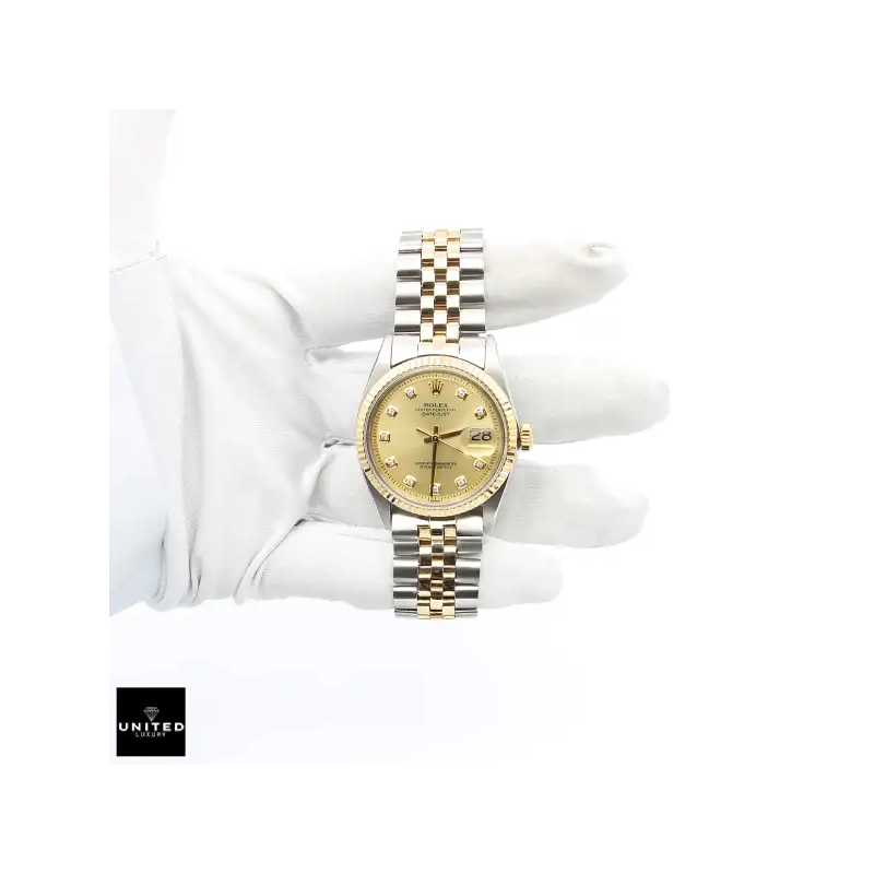 TheRolex Datejust 36 Gold Replicais a striking representation of luxury and precision. designed for those who appreciate both impeccable craftsmanship and functional elegance. Envision the gleam of the 18-carat gold case as it catches the light. exuding a timeless allure that is distinctly Rolex. The sapphire crystal dome offers a pristine view of the captivating gold dial. while providing exceptional scratch resistance. ensuring your timepiece remains as flawless as the day you first laid eyes on it.As you clasp it onto your wrist. you’ll immediately notice the exquisite attention to detail: the gold Oyster bracelet is both robust and refined. featuring an adjustable link for a perfect. comfortable fit on any wrist size. The dial. a rich shade of gold. showcases bold Roman numerals. with each hour marker and hand meticulously crafted from premium gold. ThisRolex Datejust replicacaptures every nuance of the original design. creating a true 1:1 clone that is virtually indistinguishable from the authentic model.At the heart of this masterpiece lies the automatic caliber 3235 movement. a marvel of watchmaking technology with an impressive power reserve of 70 hours. The smooth sweep of the second hand and the precision within COSC certification limits (-2/+2 seconds per day) guarantee impeccable timekeeping. This Rolex replica is also water-resistant up to 100 meters. providing peace of mind whether you’re caught in a downpour or exploring the ocean depths.Every detail of theRolex Datejust 36 Gold Replicaspeaks to its exceptional quality and craftsmanship. The markings. the size. the thickness. and even the font mirror those of the original. delivering an experience that is as close to owning a genuine Rolex as possible. Backed by a full 2-year international warranty. this watch is not just a purchase but an investment in style and reliability.Wearing theRolex Datejust 36 Gold Replicais not just about telling time; it’s about making a statement of sophistication and excellence. This isn’t merely a watch—it’s a conversation starter. a testament to your refined taste and appreciation for the finer things in life. If you’re in search of a Rolex timepiece that embodies luxury. precision. and durability. look no further. These exceptional Rolex replicas are unmatched in their class.