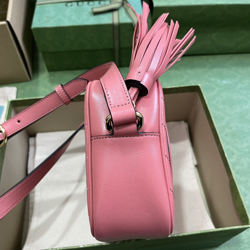 Gucci Blondie, the small shoulder bag, is an interpretation of the Gucci Blondie collection with its rounded interlocking double Gs from the House’s collection. These classic pieces from the Gucci Blondie collection, including the shoulder and crossbody bags, have been reinterpreted with refined leather applique detailing. Available in rose pink leather and as a selection with the Gucci Authenticity Tag, this item supports NFC technology to help you authenticate and enjoy a digitally innovative experience. Round interlocking double G leather appliqués, side tassel detailing, shoulder strap (54.5cm high) with zip closure. Model number: 742360. Size: 21 (W) x 15.5 (H) x 5cm (D) Colour: Rose pink / original leather. Italian creation